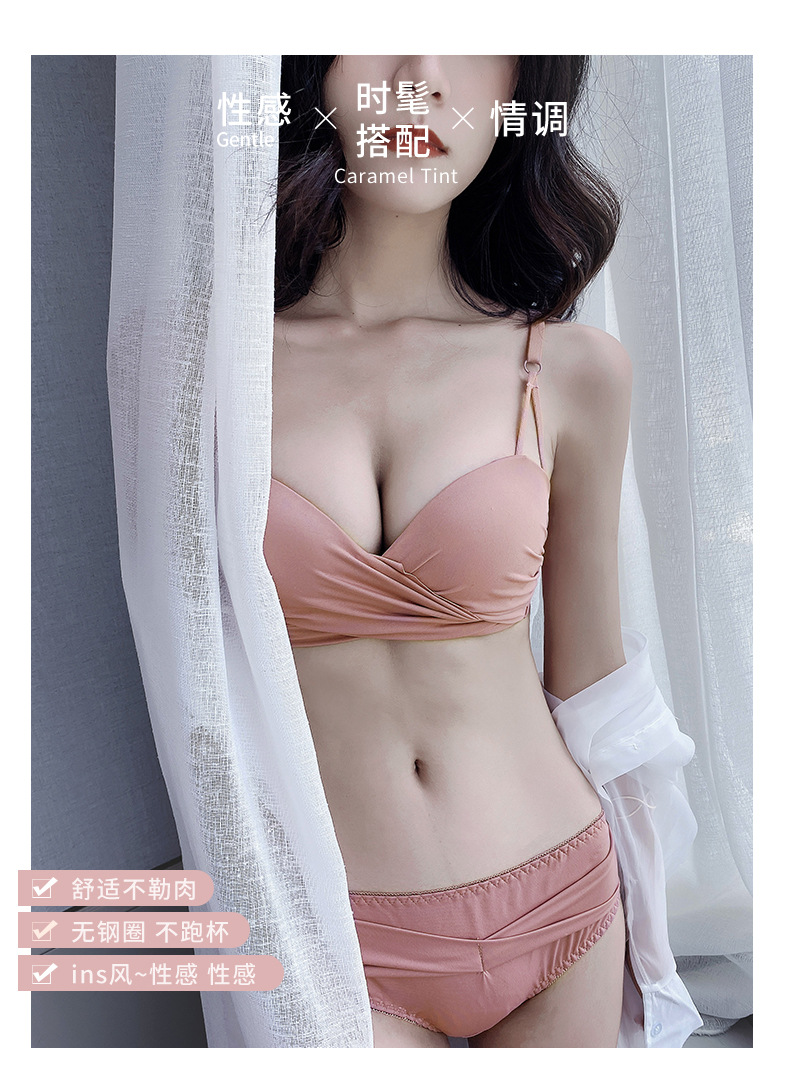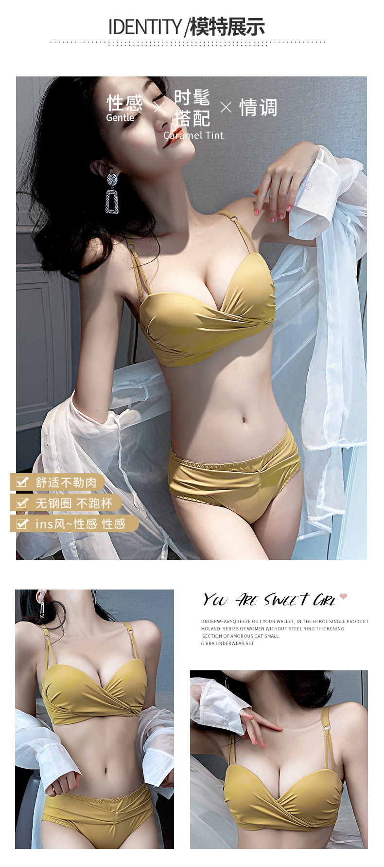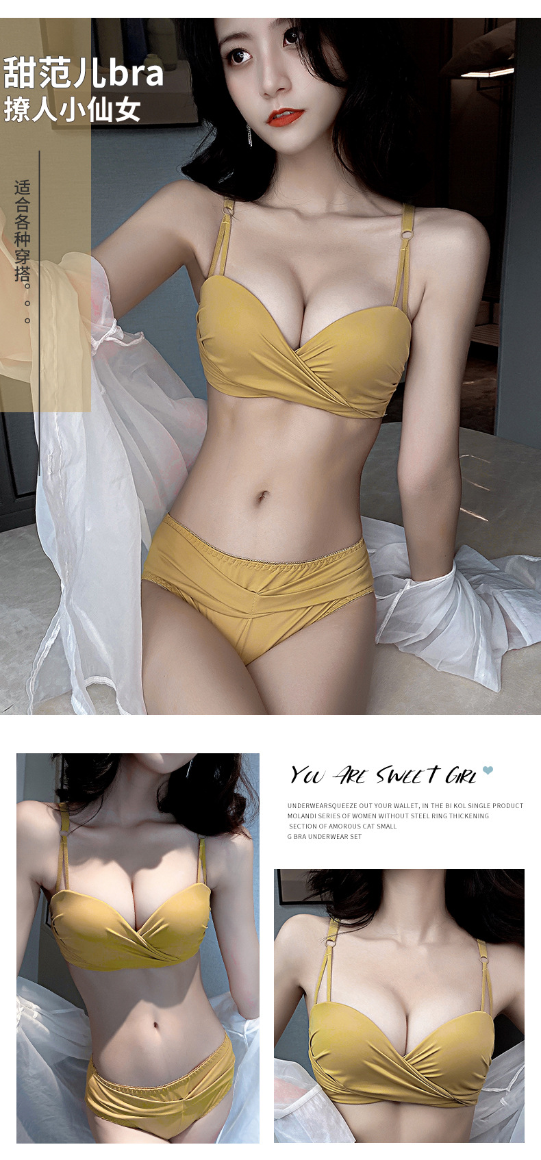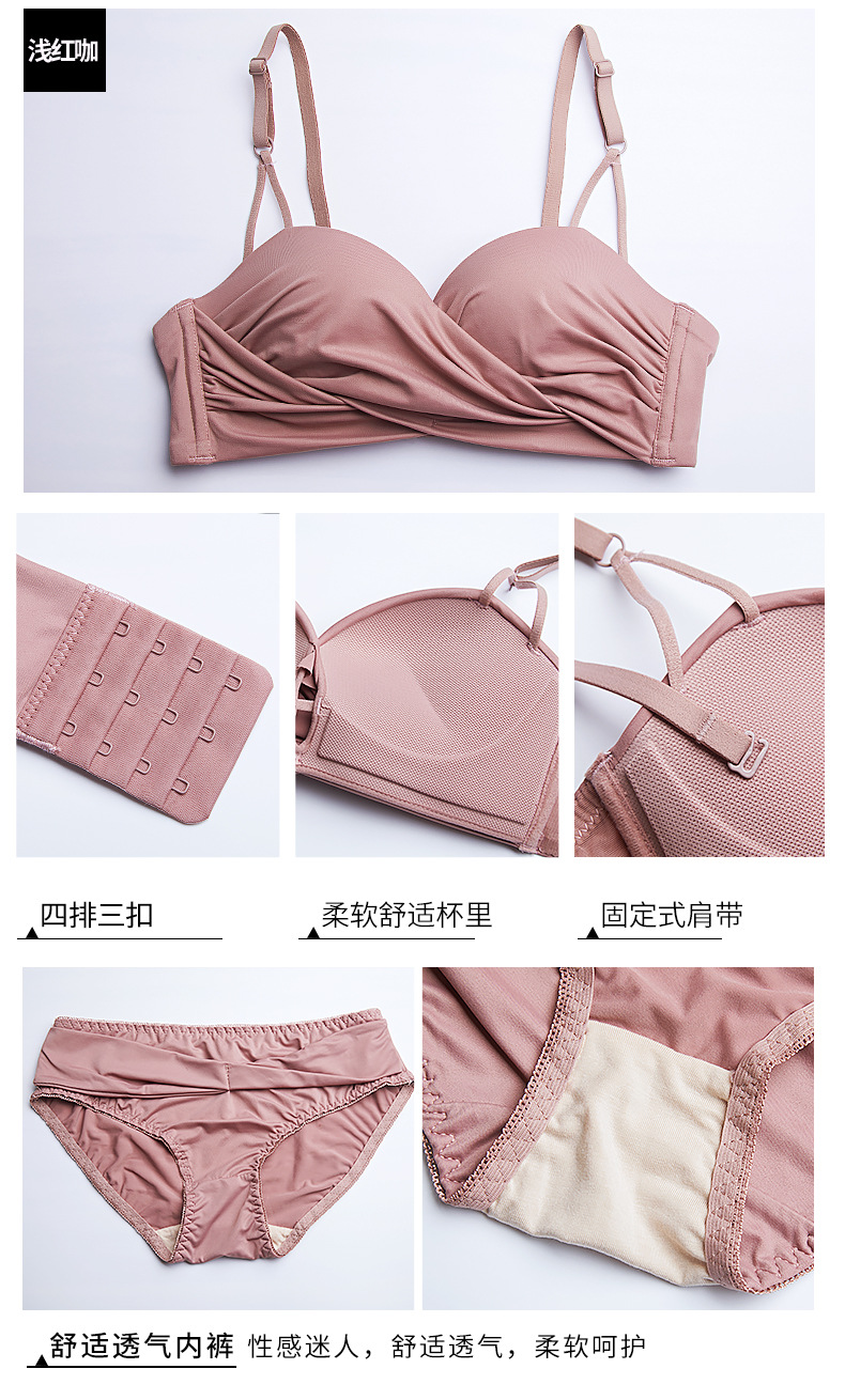 无痕内衣女无钢圈聚拢少女小胸显大平胸专用性感文胸罩套装加厚