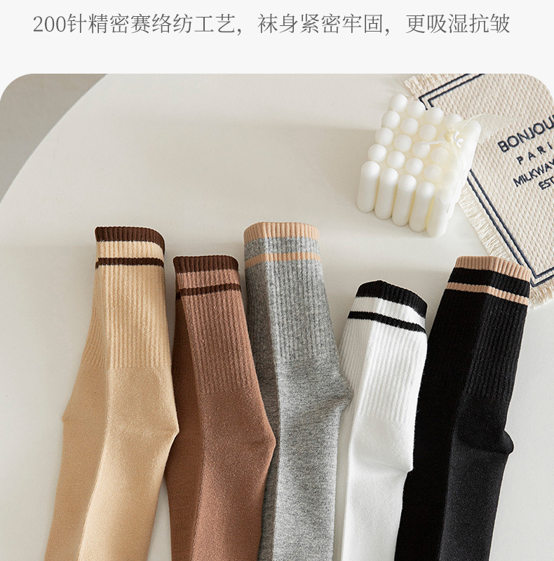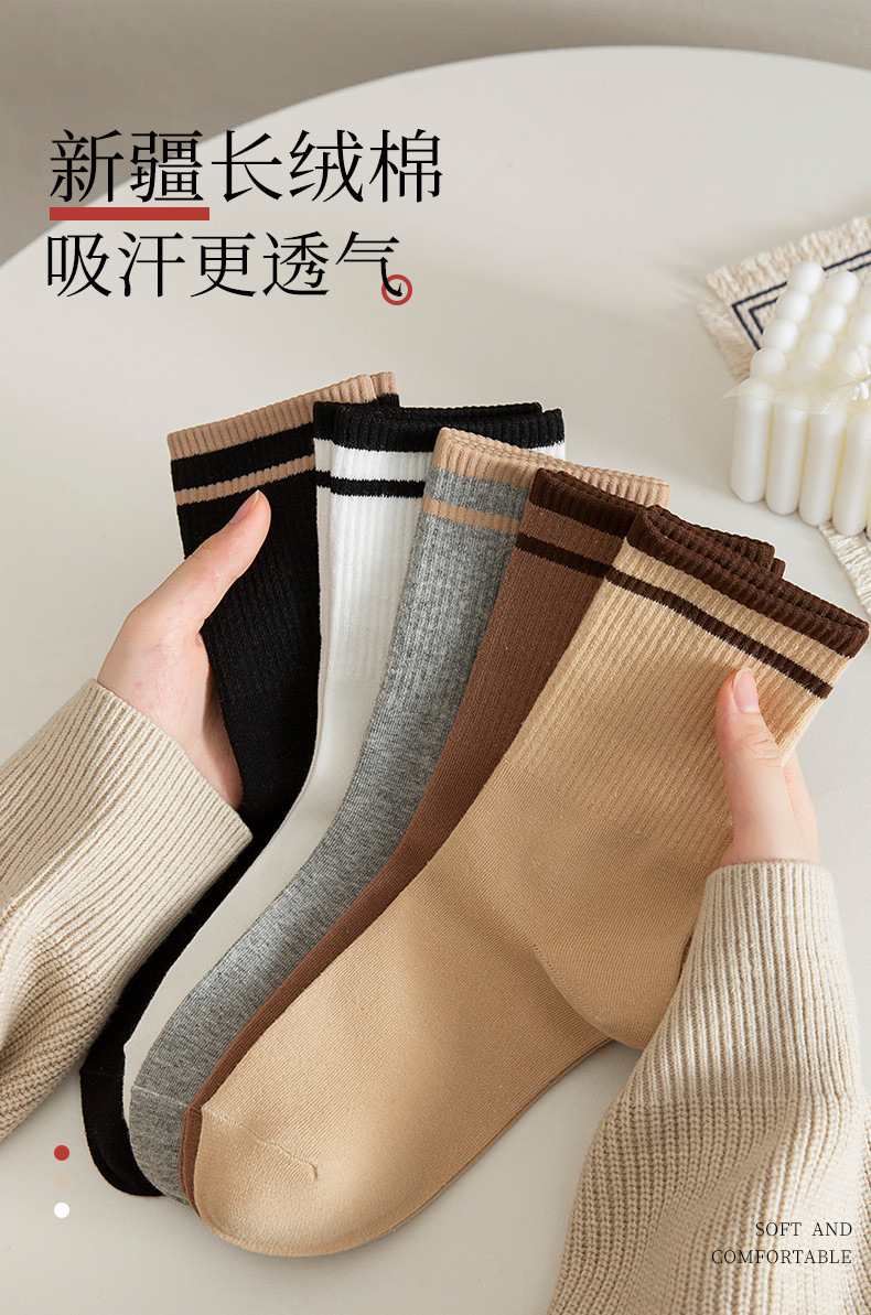 【棉条纹男中筒袜长袜】袜子男中筒袜长袜棉条纹秋冬男士吸汗休闲运动袜纯色