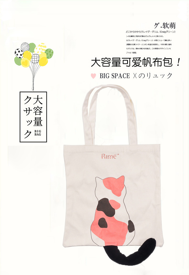 文艺猫猫吊尾巴粉色围巾猫环保帆布包系列