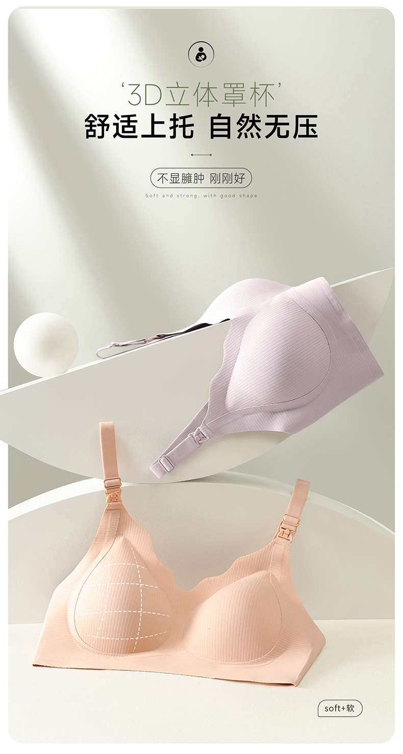【一秒解扣,两秒哺乳~】新款春夏季哺乳内衣 无钢圈螺纹上开扣 无痕产后孕妇 文胸内衣-QQ