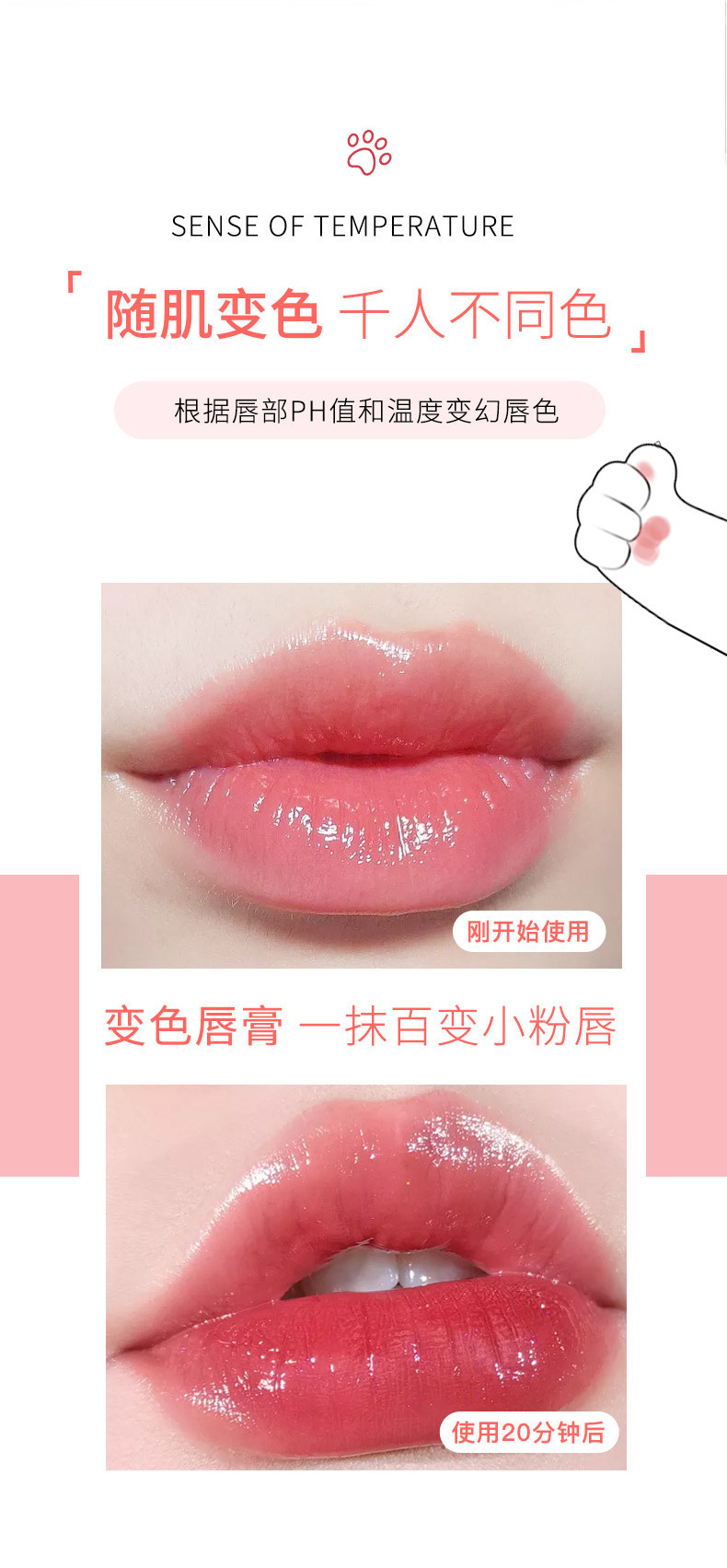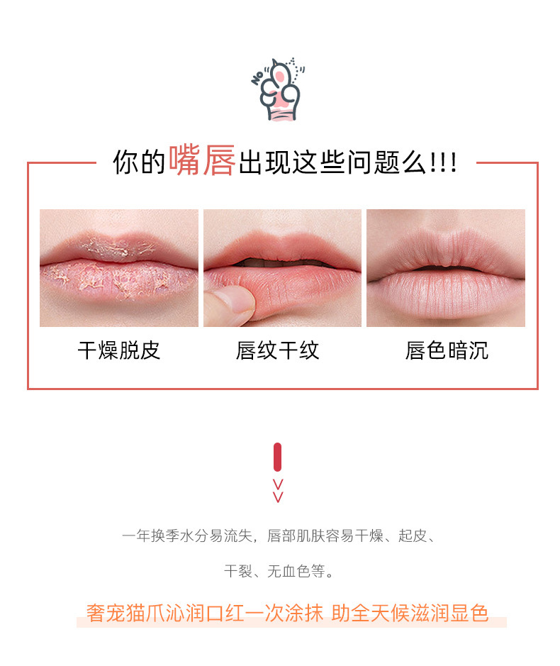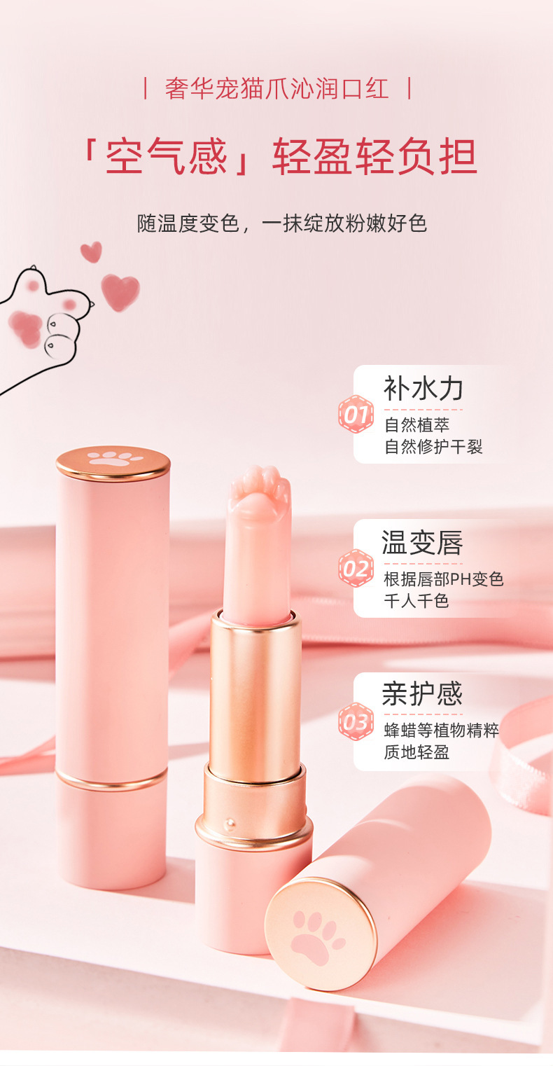抖音热卖款【奢华宠猫爪沁润口红】秋冬保湿滋润防干 猫爪变色膏 唇部护理