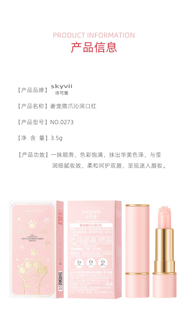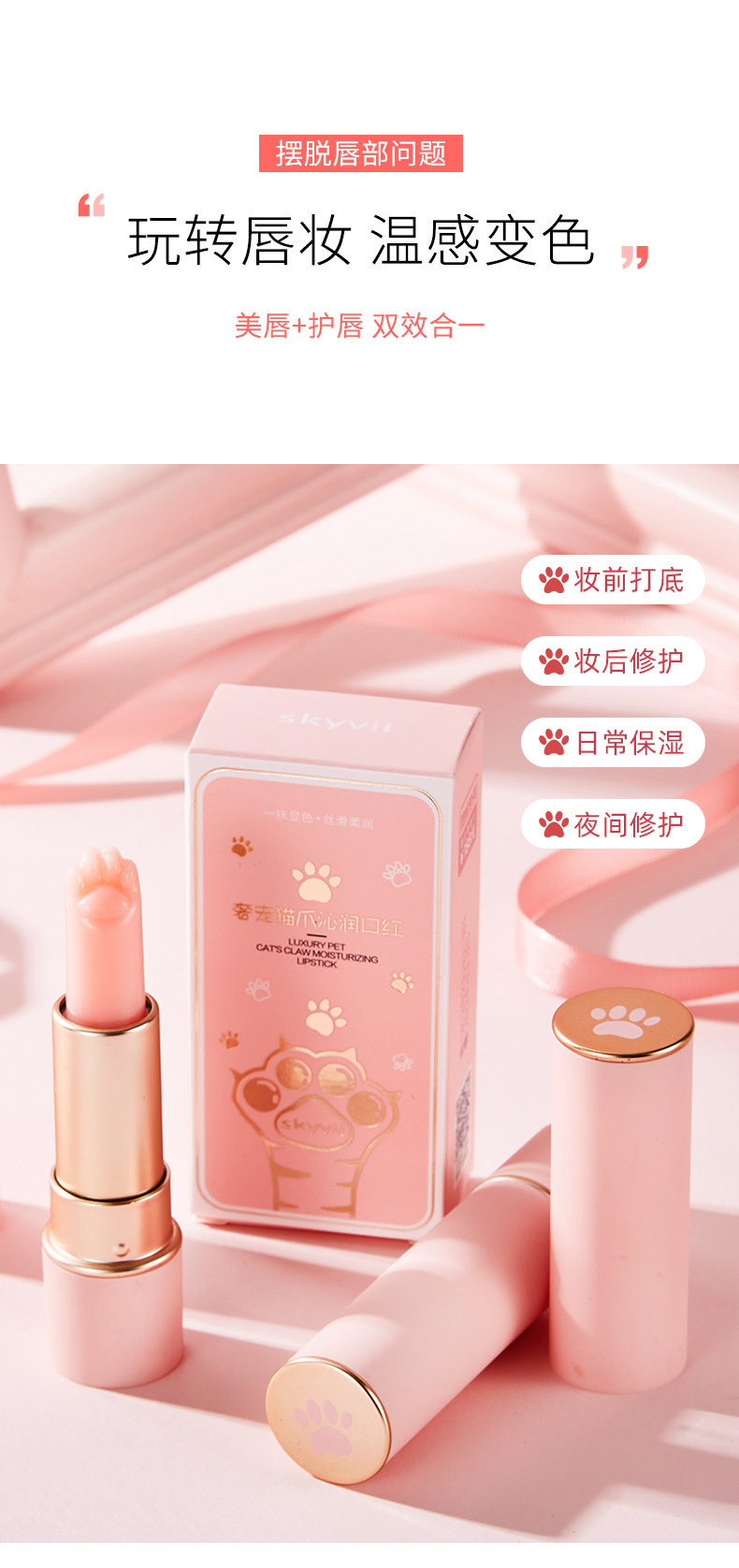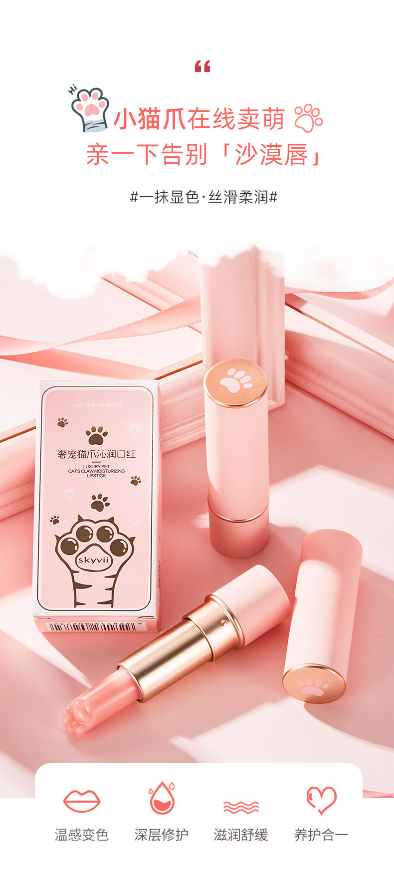 抖音热卖款【奢华宠猫爪沁润口红】秋冬保湿滋润防干 猫爪变色膏 唇部护理