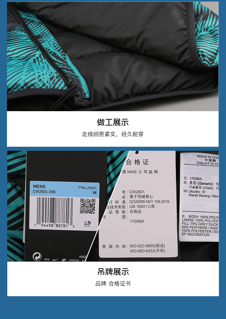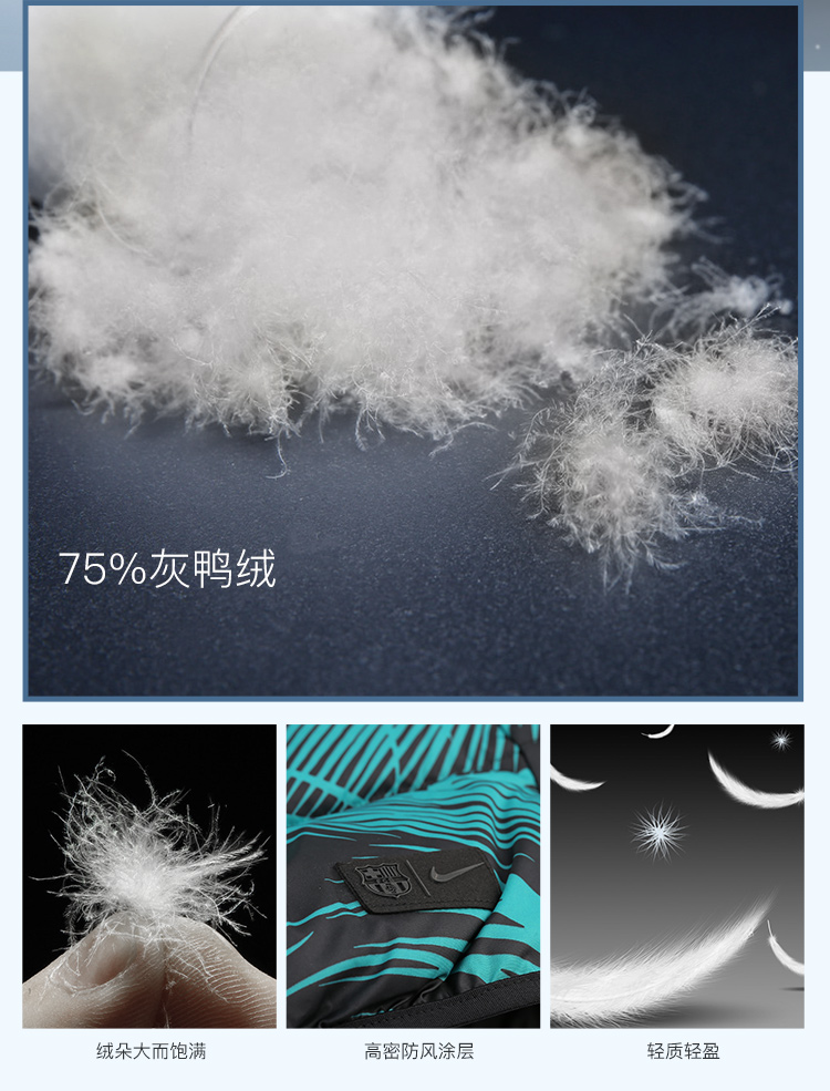 小李子正品NIKE耐克2020冬季FC巴萨迷彩羽绒足球背心男CW2601-396