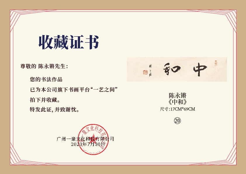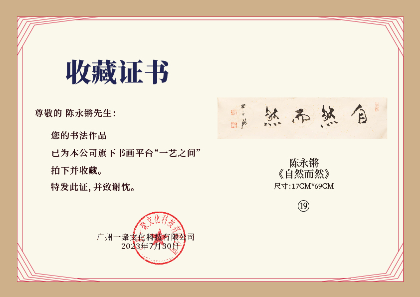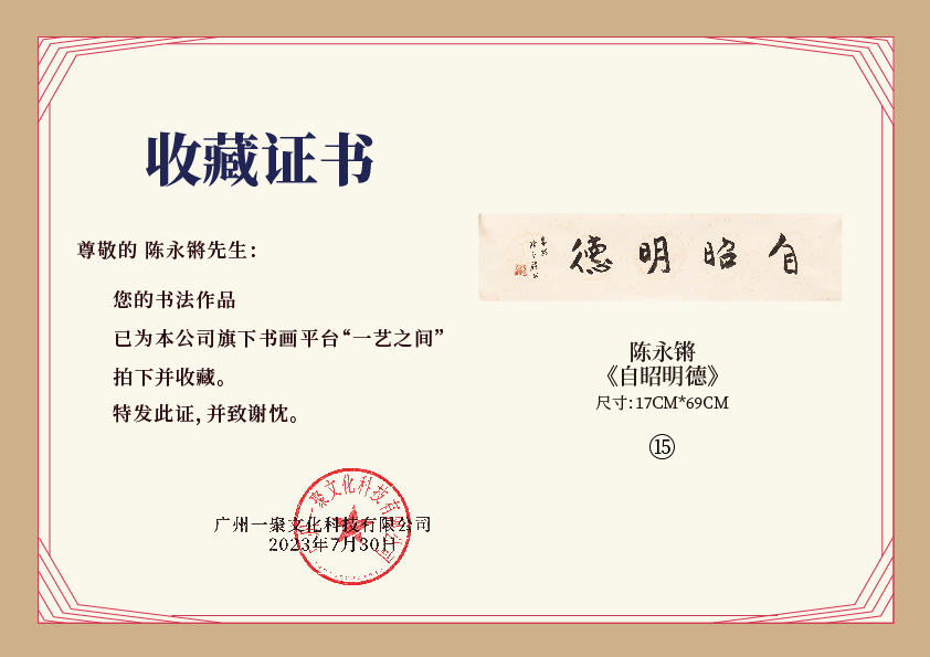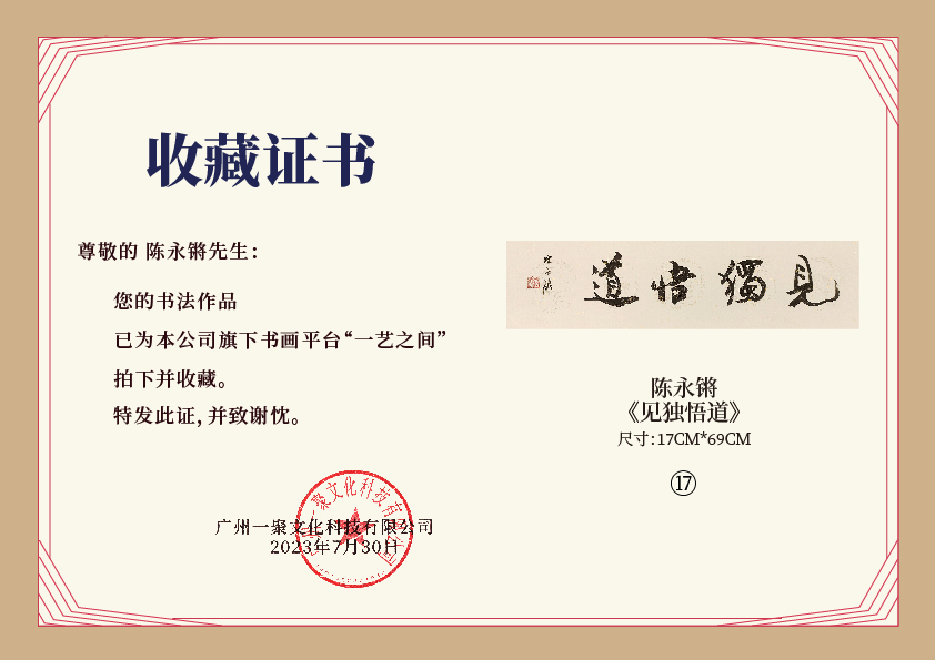 注意:下方收藏证书仅为微信视频号官方要求示意在“一艺之间”下单销售产品均为老师本人授权正版,并非随单赠送,敬请理解。
