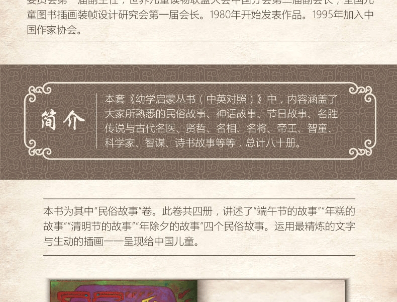 《幼学启蒙丛书:中国民俗故事(汉英对照)(套装共4册)》包括:《年除夕的故事》、《端午节的故事》、《清明节的故事》、《年糕的故事》共4册。