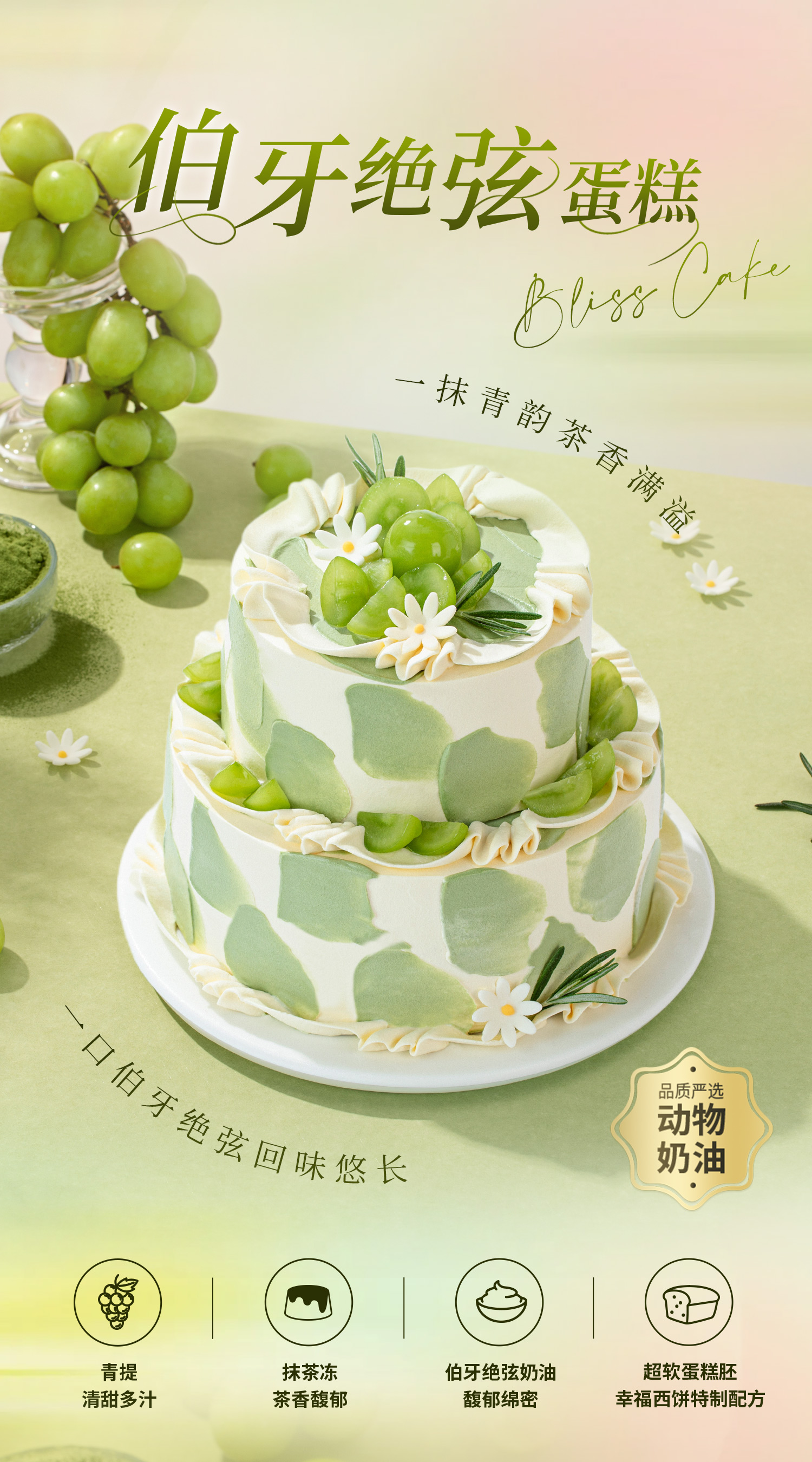 【野餐露营推荐】伯牙绝弦蛋糕,与好友共赴一场茶香四溢的春日之约。一抹青韵茶香满溢,一口伯牙绝弦回味悠长。