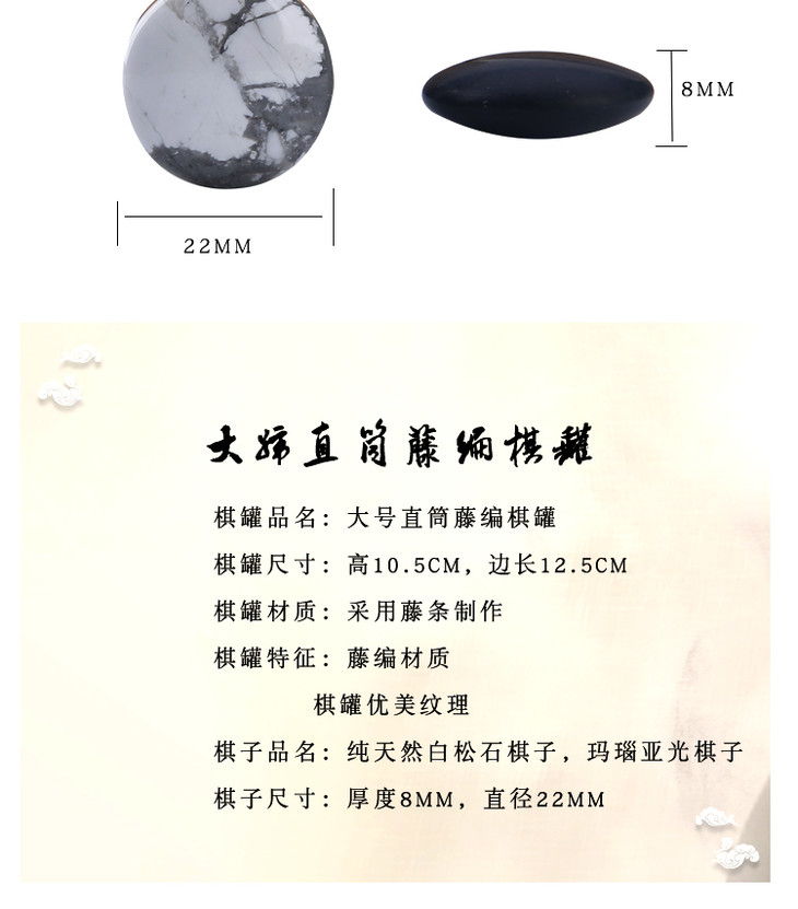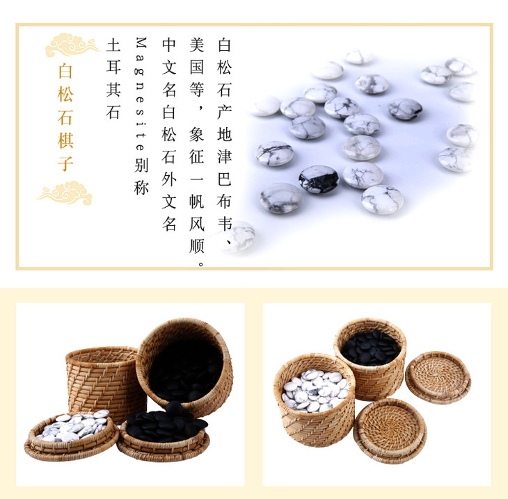 天然白松石棋子  玛瑙亚光棋子 大号直筒藤编棋罐 商品图4