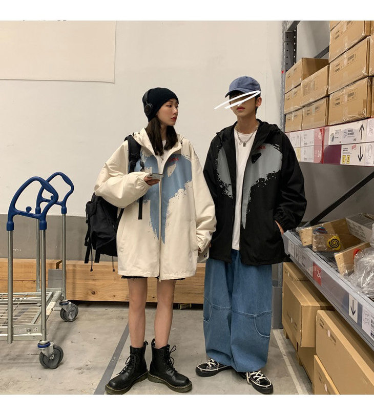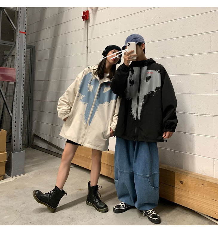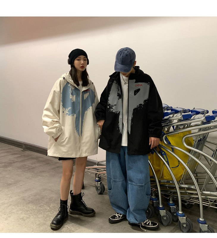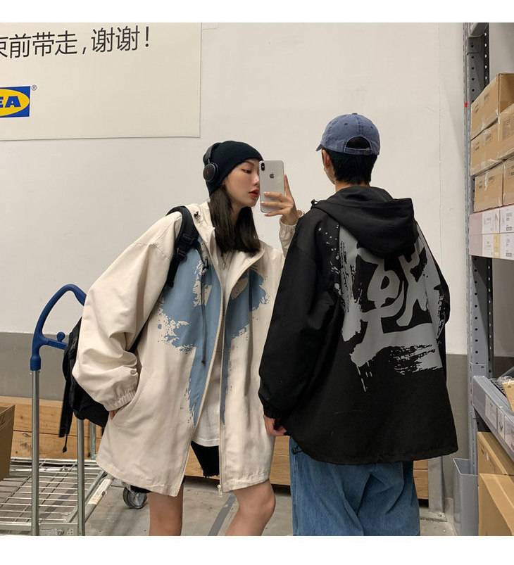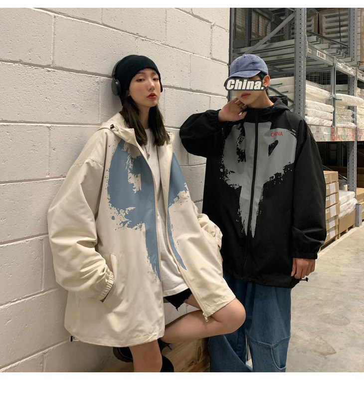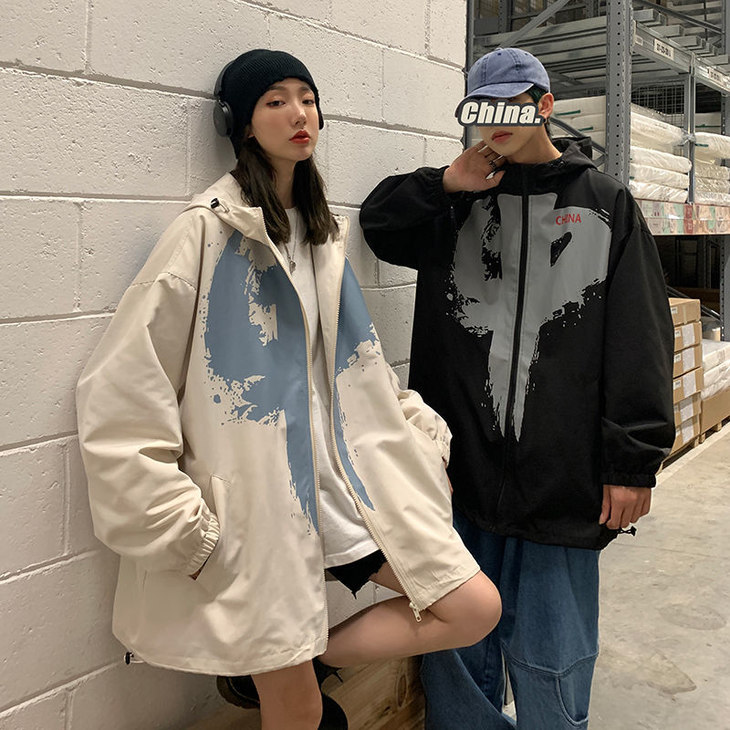 外套男女潮ins秋季新款情侣装大码宽松夹克港风中国外套学生班服