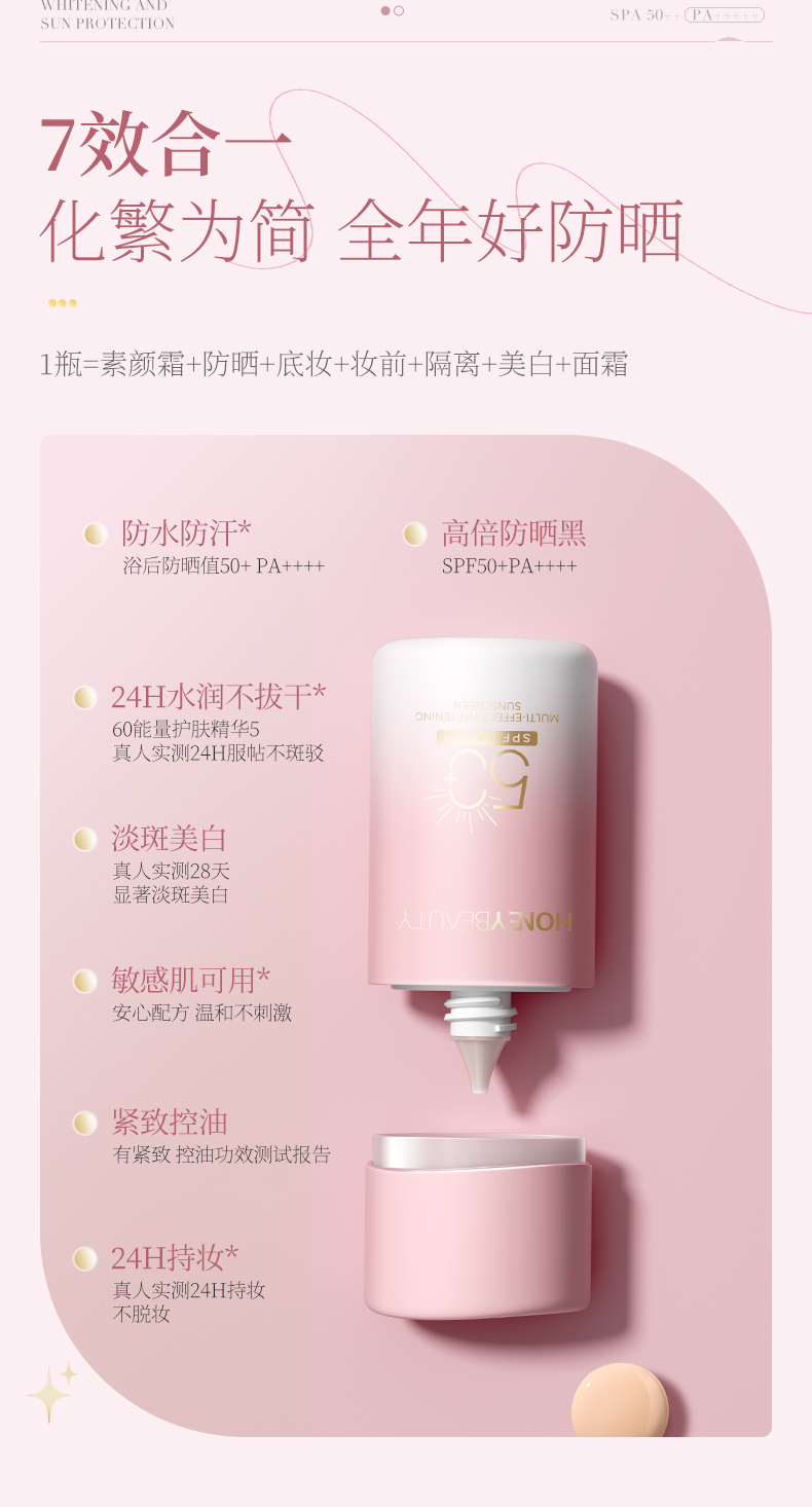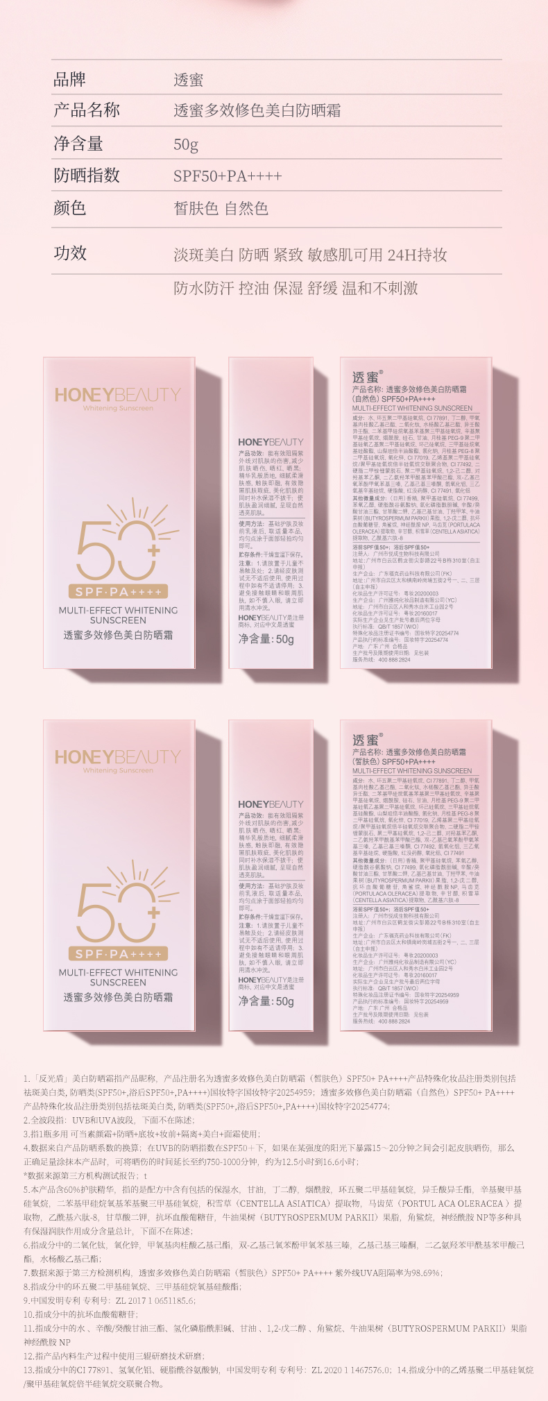【蜜家特惠 ¥19.9/支 ¥38.9/2支】透蜜多效修色美白防晒霜SPF50+ PA++++ 50g