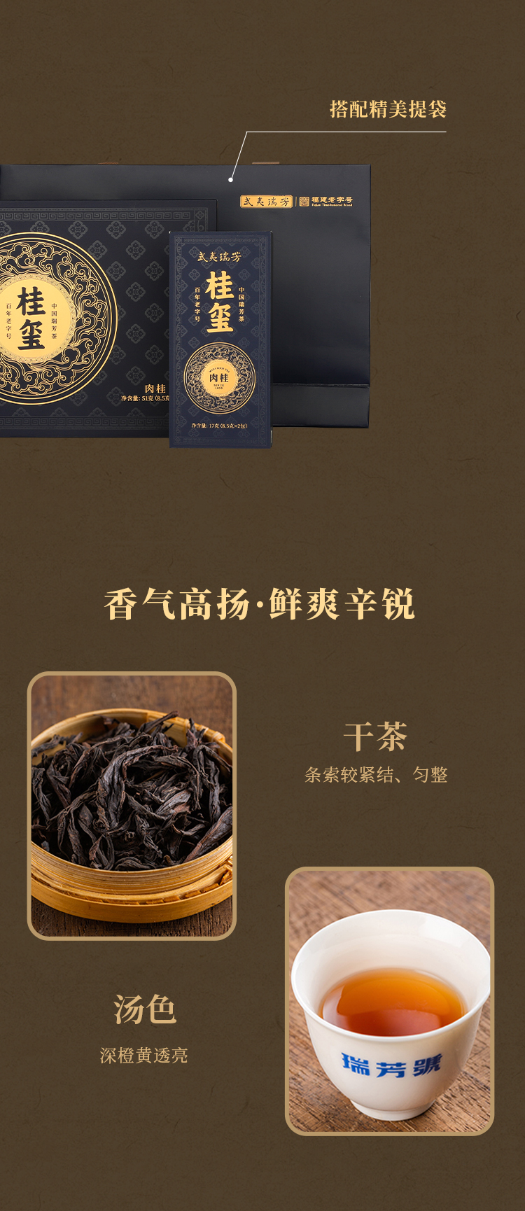 武夷瑞芳茶號,創建於一八九九年,由江氏制茶泰斗,江泰源先生於武夷山原崇安縣碼頭創辦,爲清末著名茶坊,在当地地方志中會記載,飮武夷山茶,瑞芳上品也。