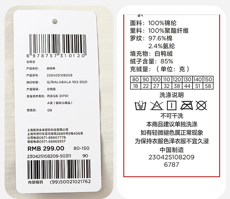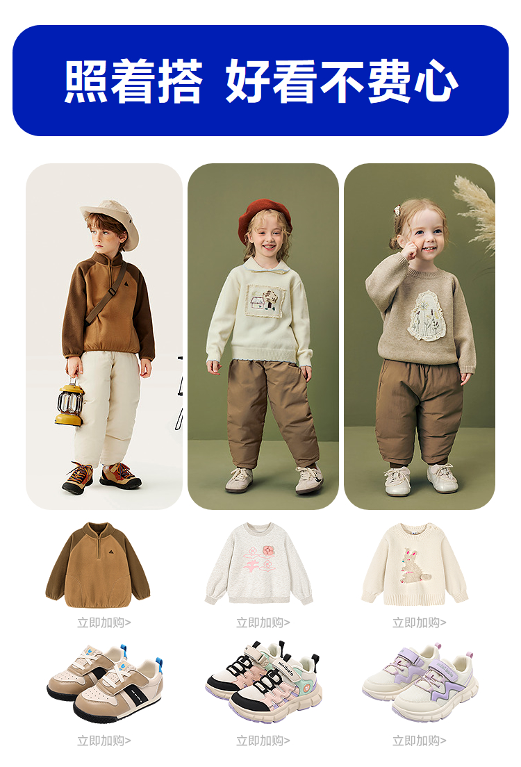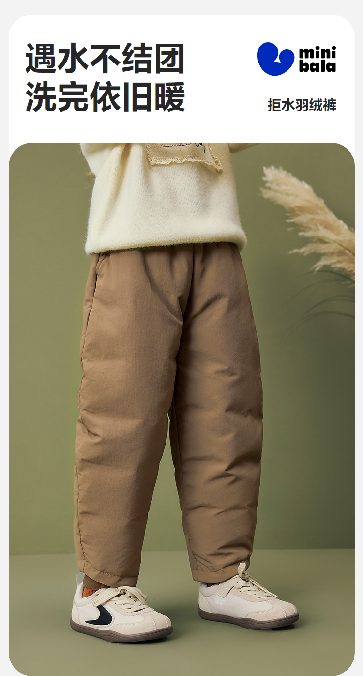 [迷你真心绒]迷你巴拉男女童宝宝羽绒裤拒水绒三防假两件脚口裤子