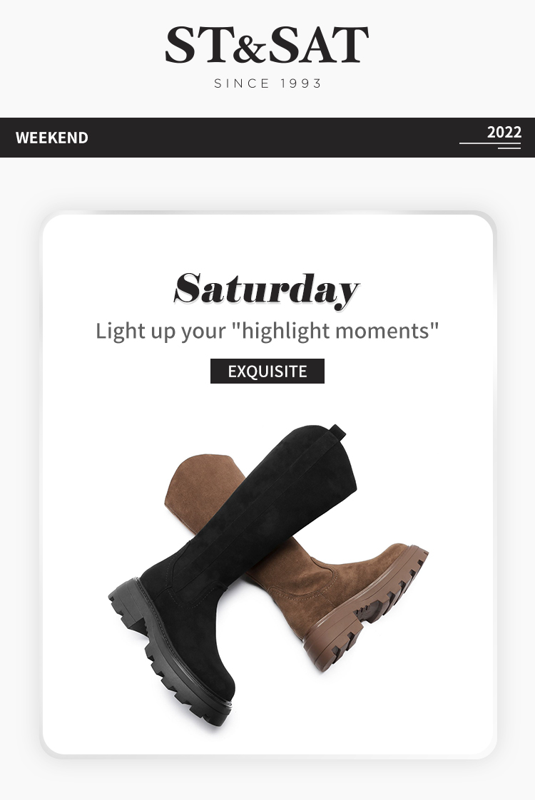 星期六圆头反绒V口绒里长靴SS24119223