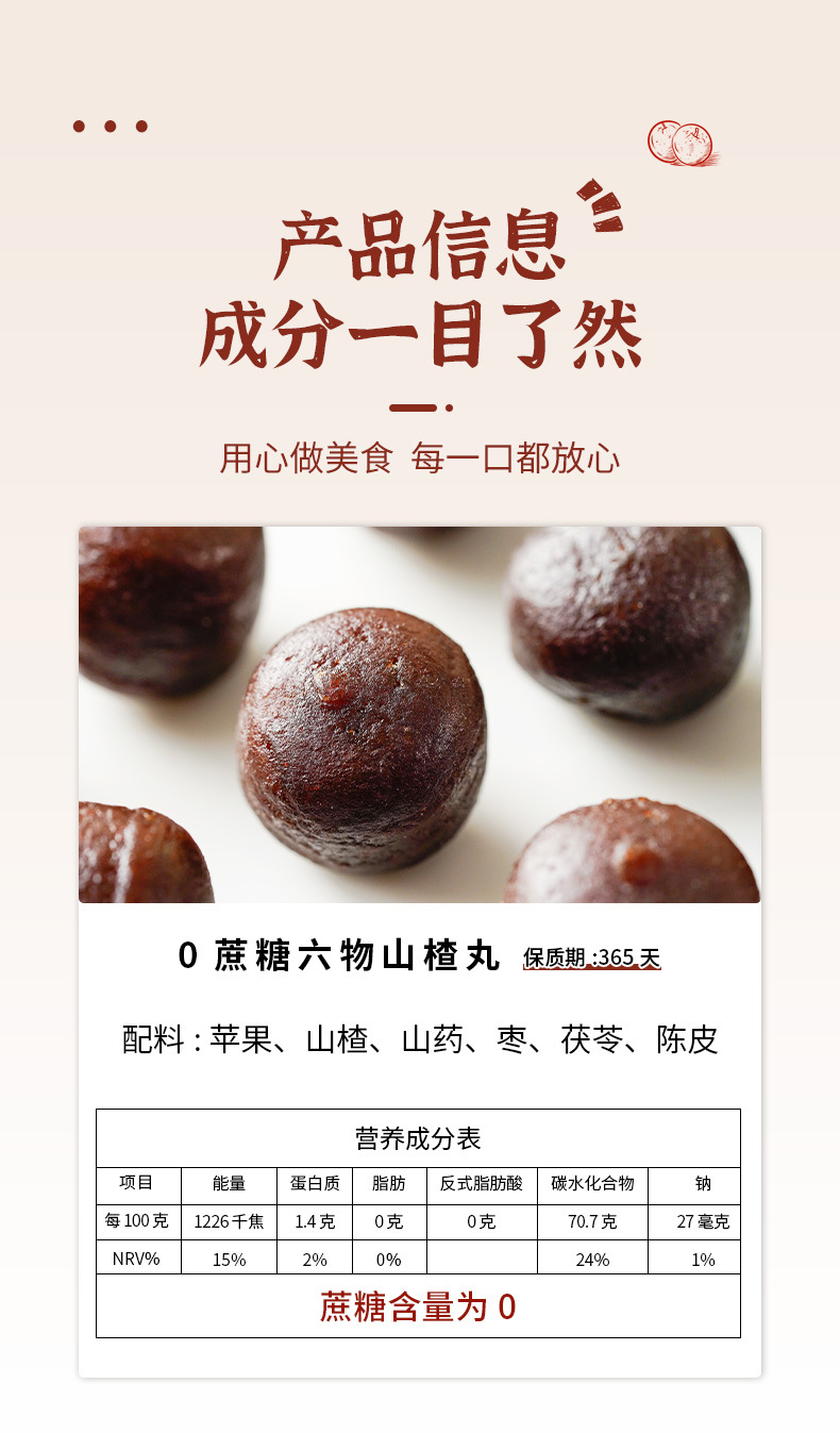 【酸甜有料!六物山楂丸】不单独添加蔗糖 蜜饯果脯 休闲追剧儿童解馋 酸甜软糯营养健康零食品