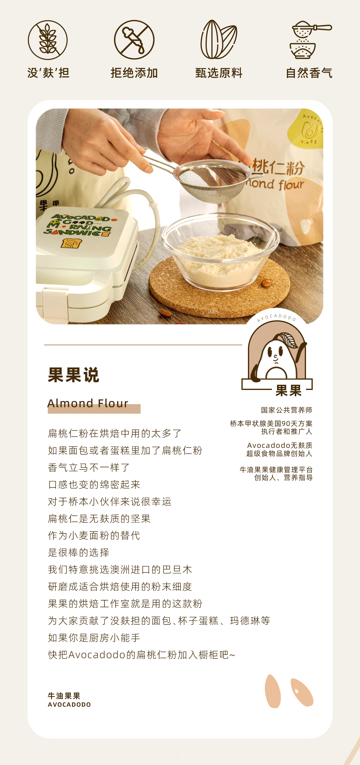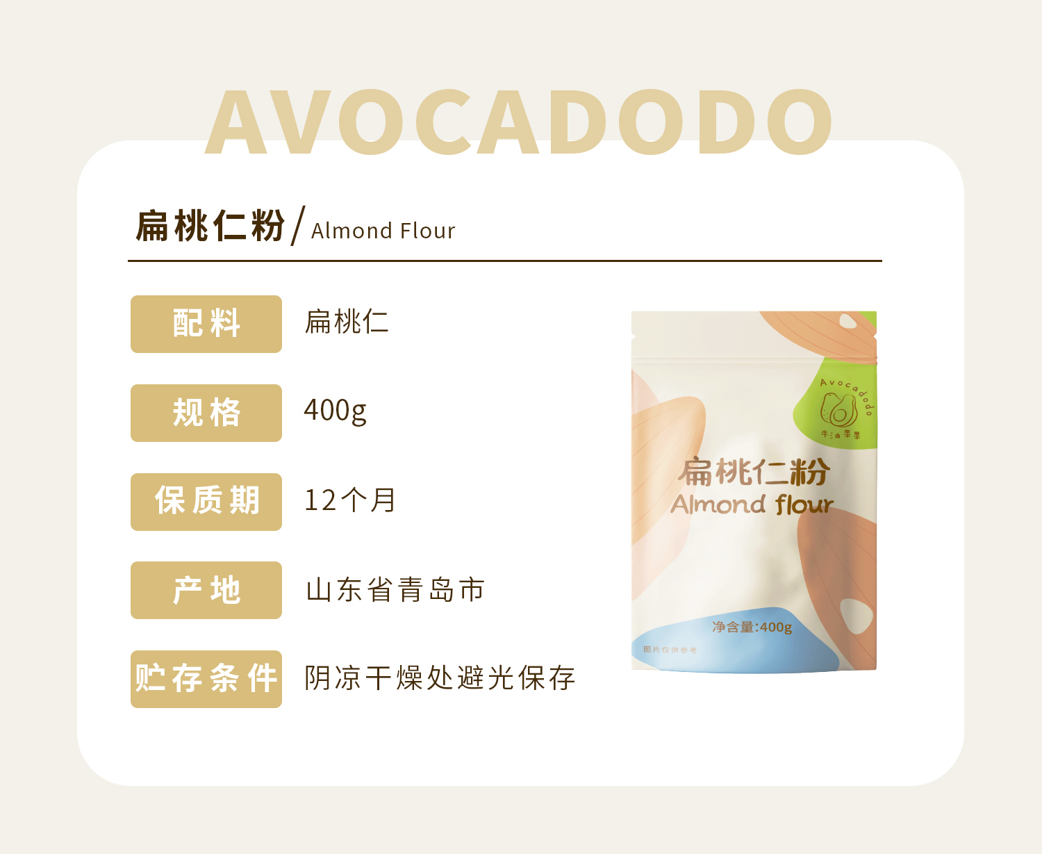 Avocadodo纯扁桃仁粉巴旦木粉烘焙曲奇饼干马卡龙生酮澳洲原料