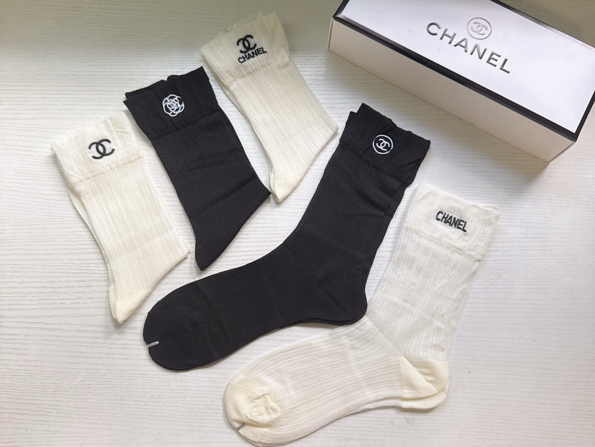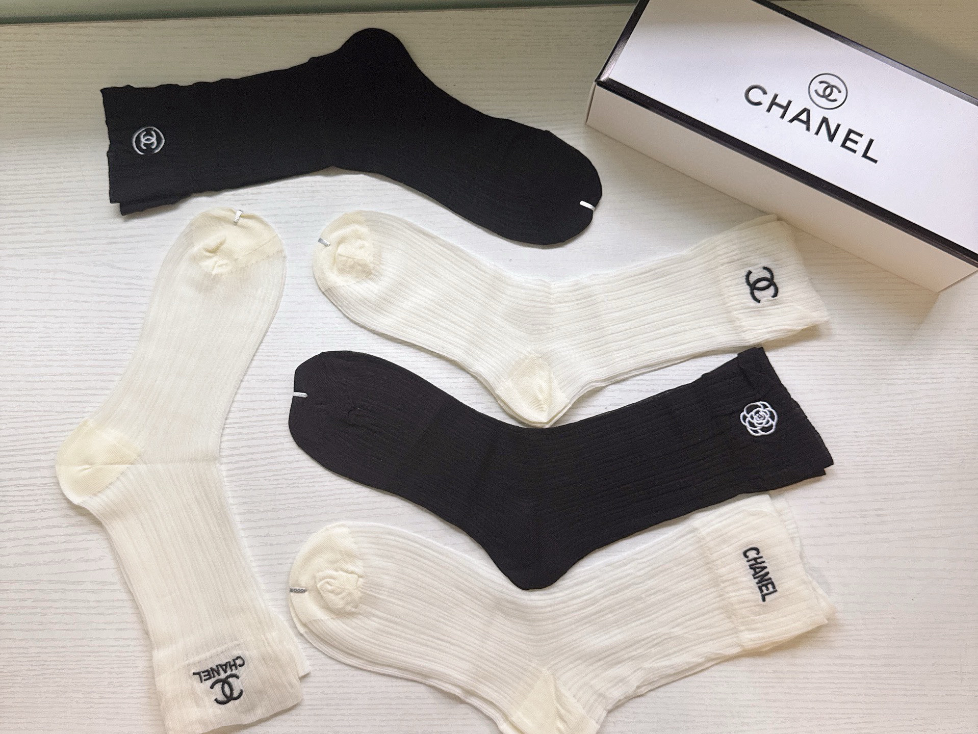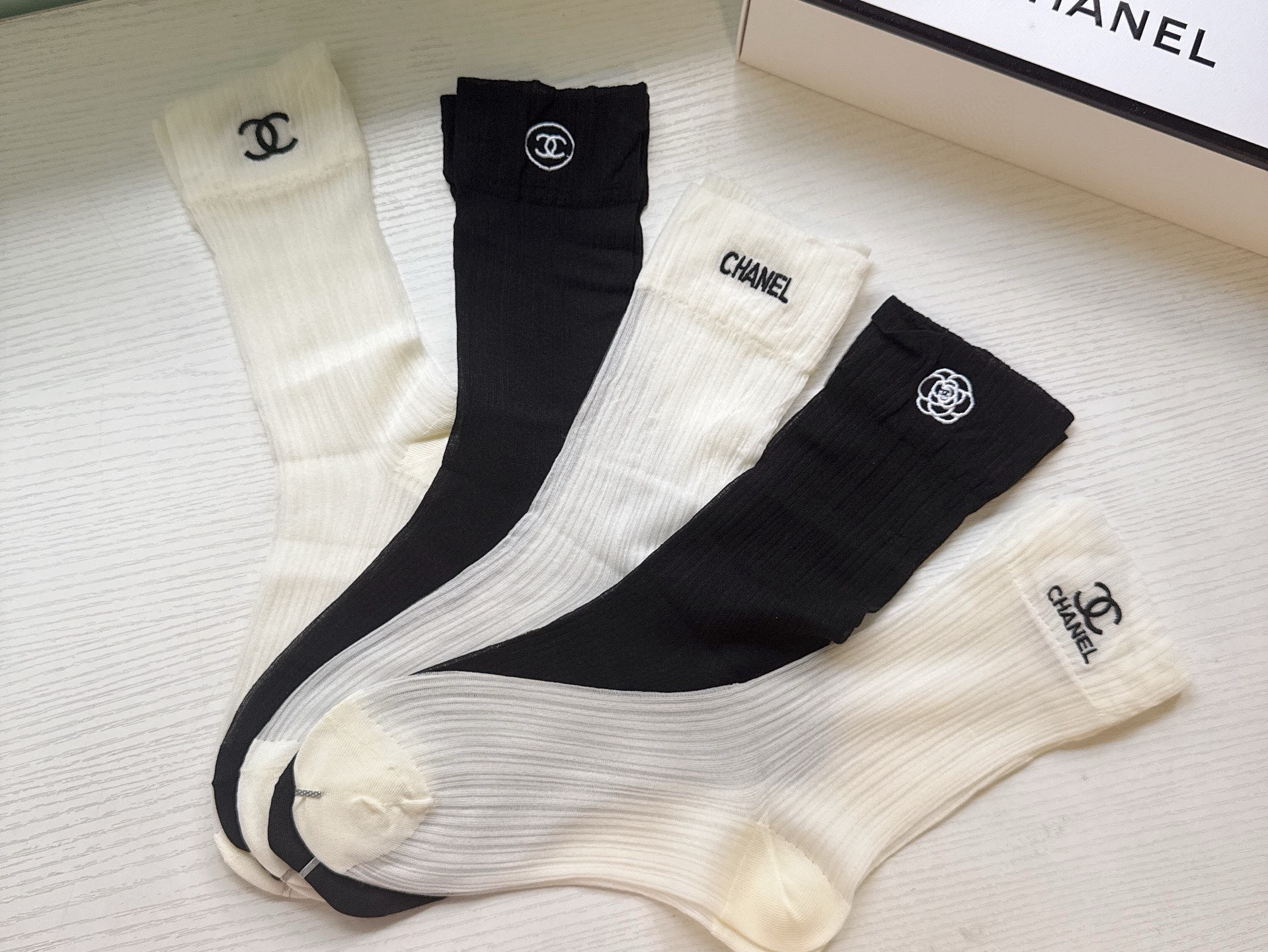 秋冬特惠💰130 香奈儿袜子 CH新品网红女款袜子 【一盒五双】冰丝材质,轻薄冰凉透气舒适