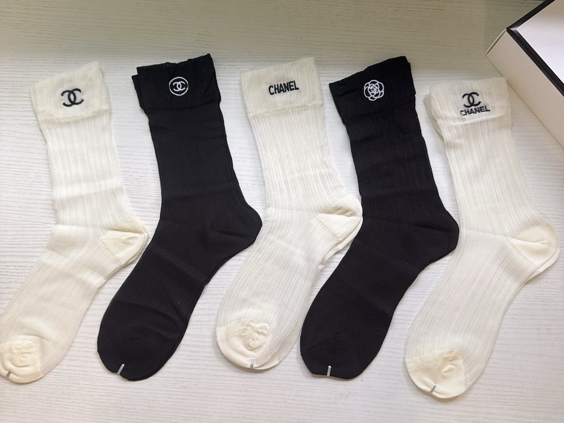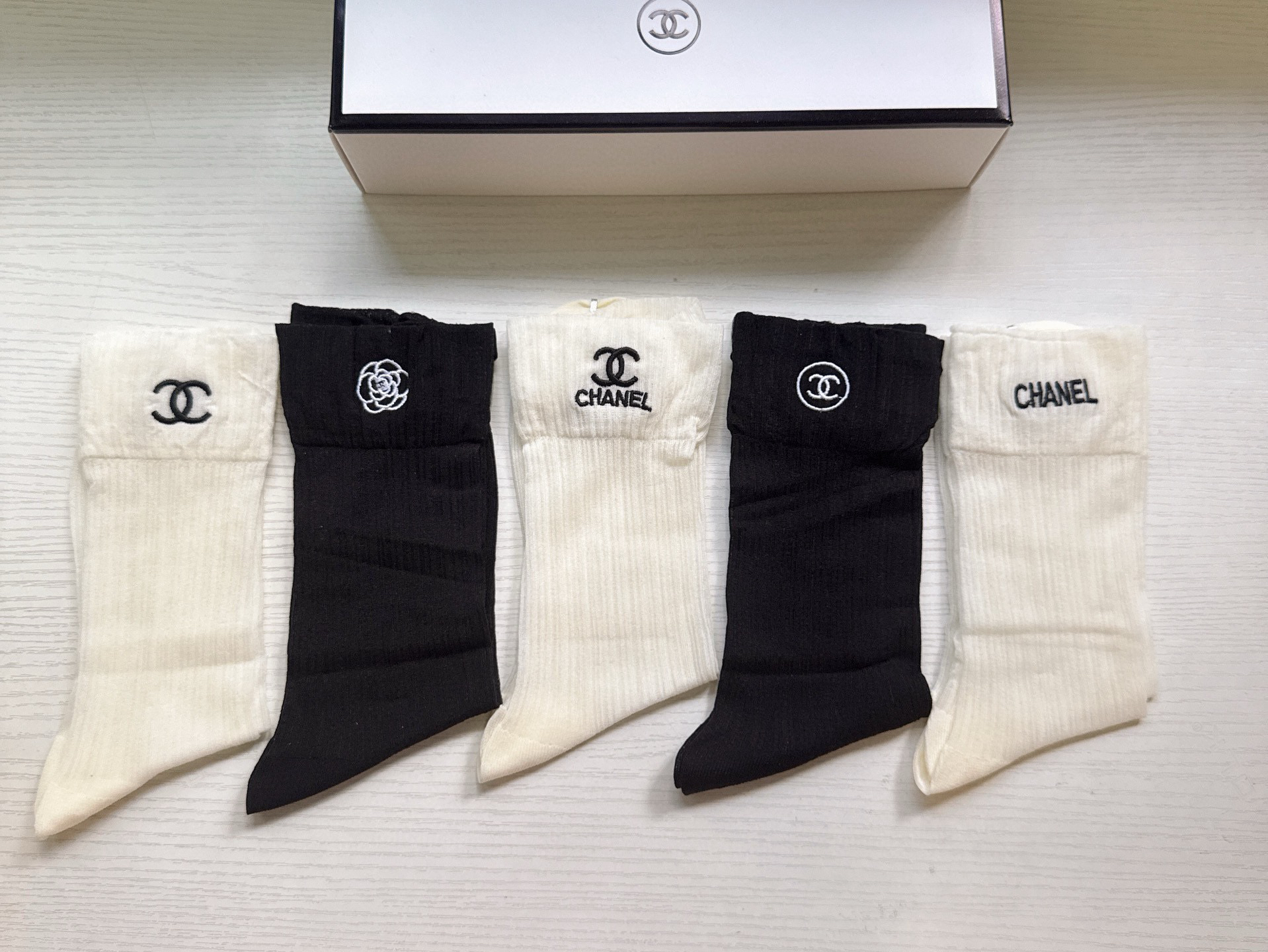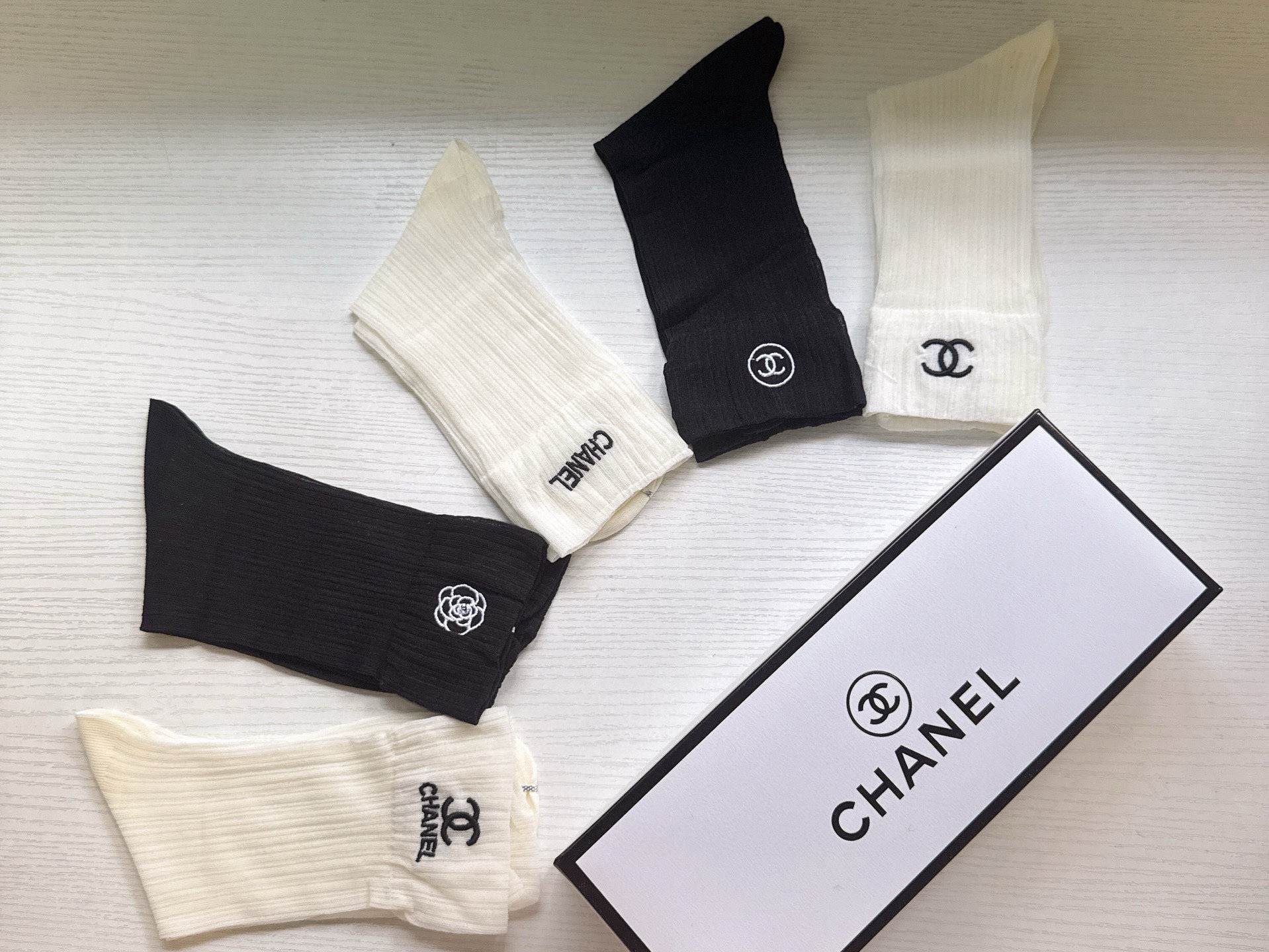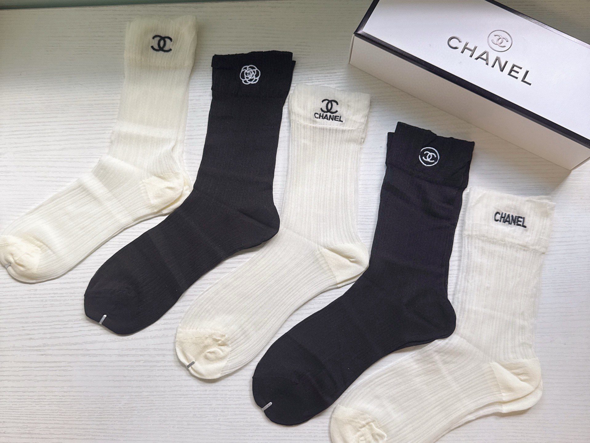 秋冬特惠💰130 香奈儿袜子 CH新品网红女款袜子 【一盒五双】冰丝材质,轻薄冰凉透气舒适