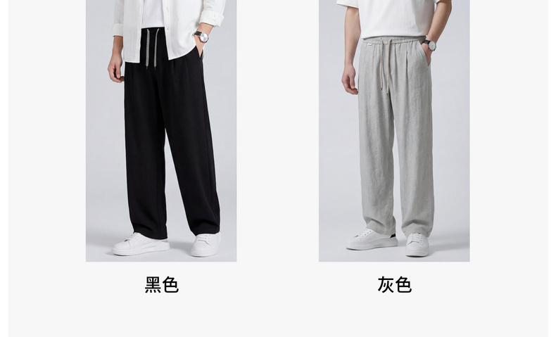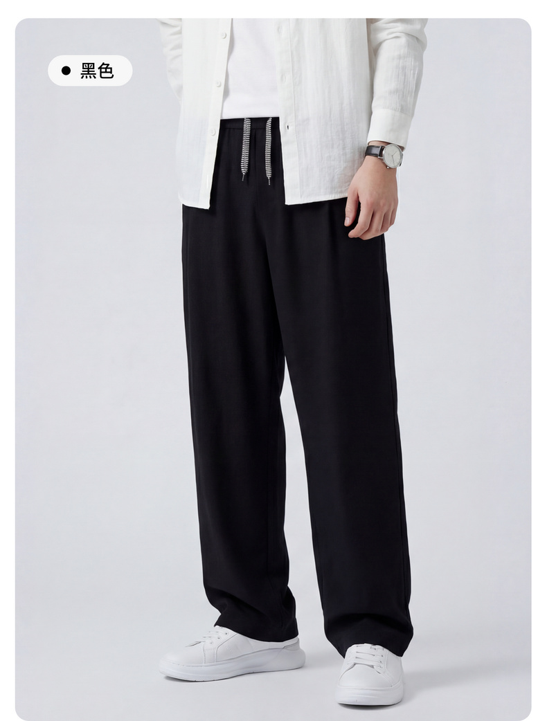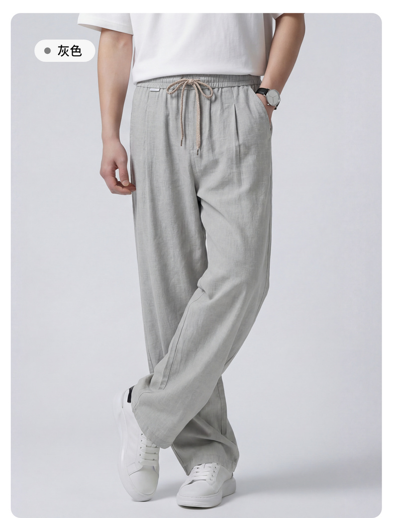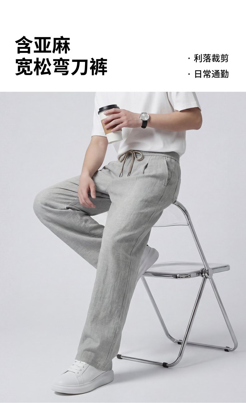 【含亚麻】圣得西宽松直筒裤子男款2026新款春季松紧腰休闲弯刀裤