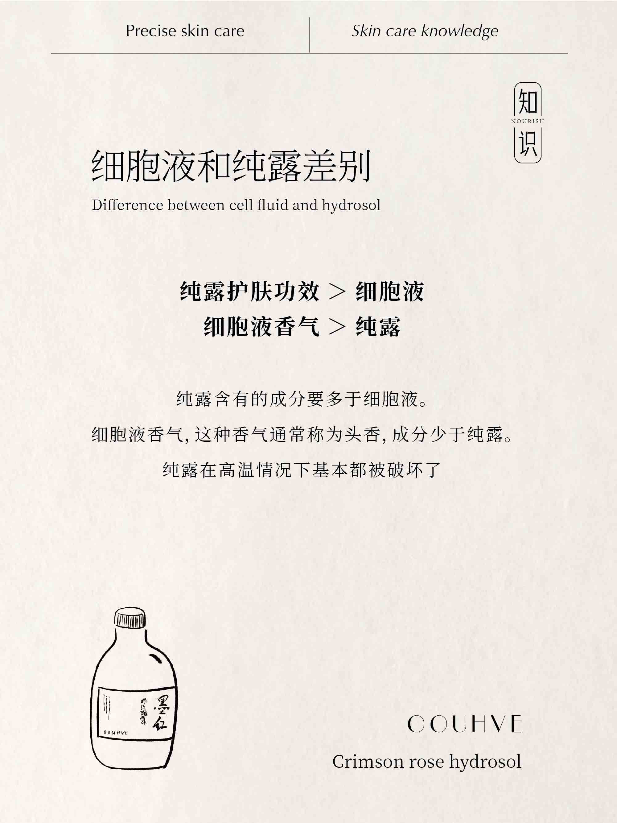 纯露特点是含有的成分要多于细胞液,细胞液的特点是香气,成分少于纯露。