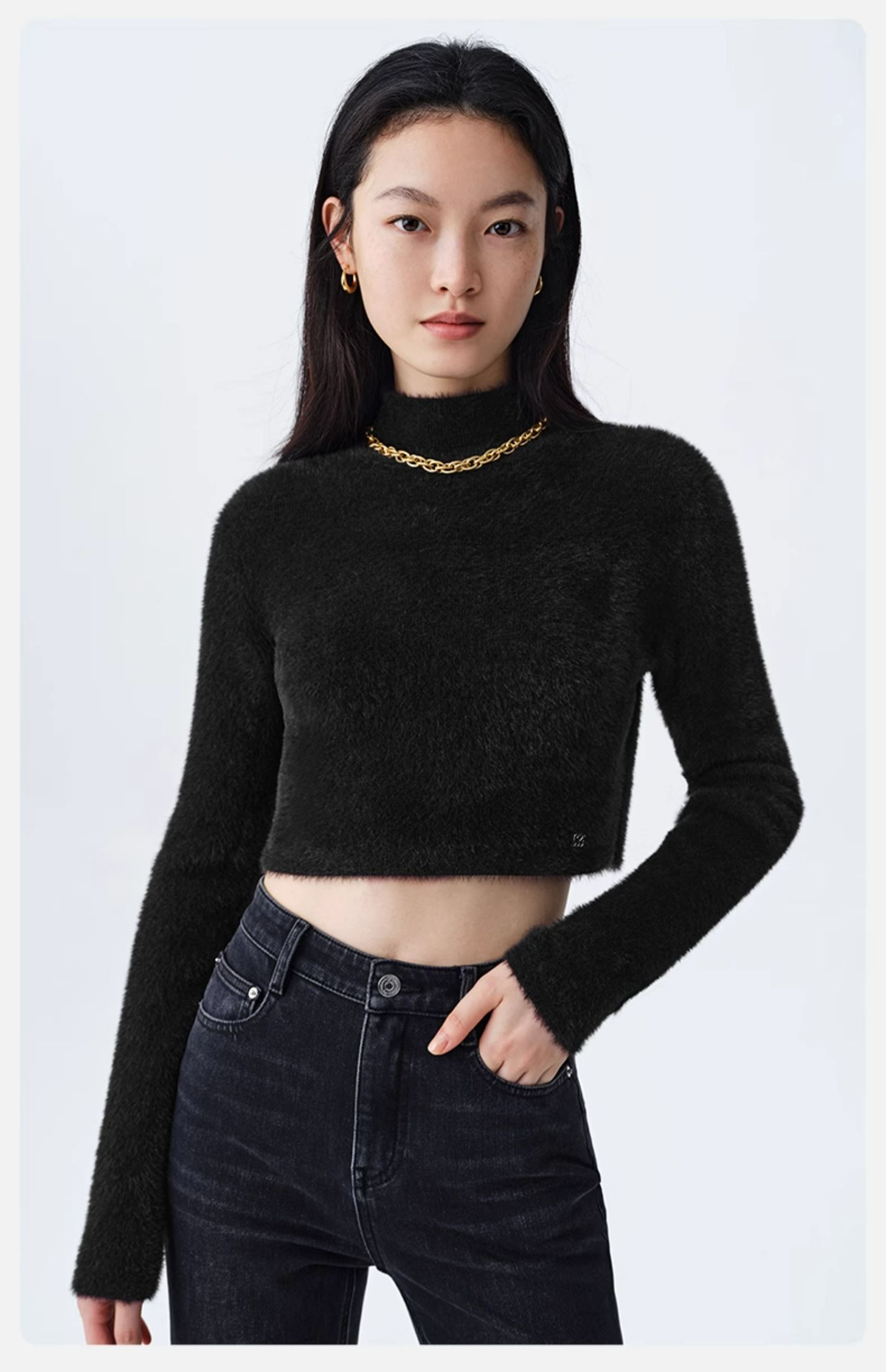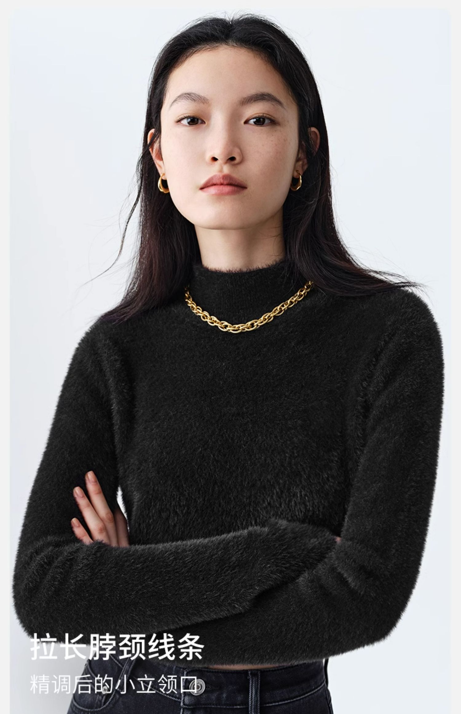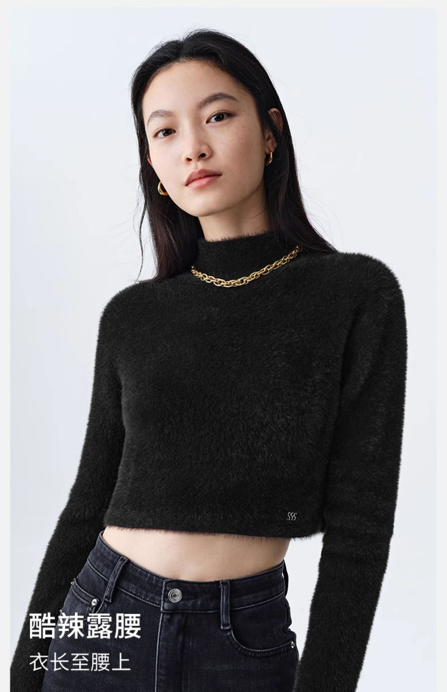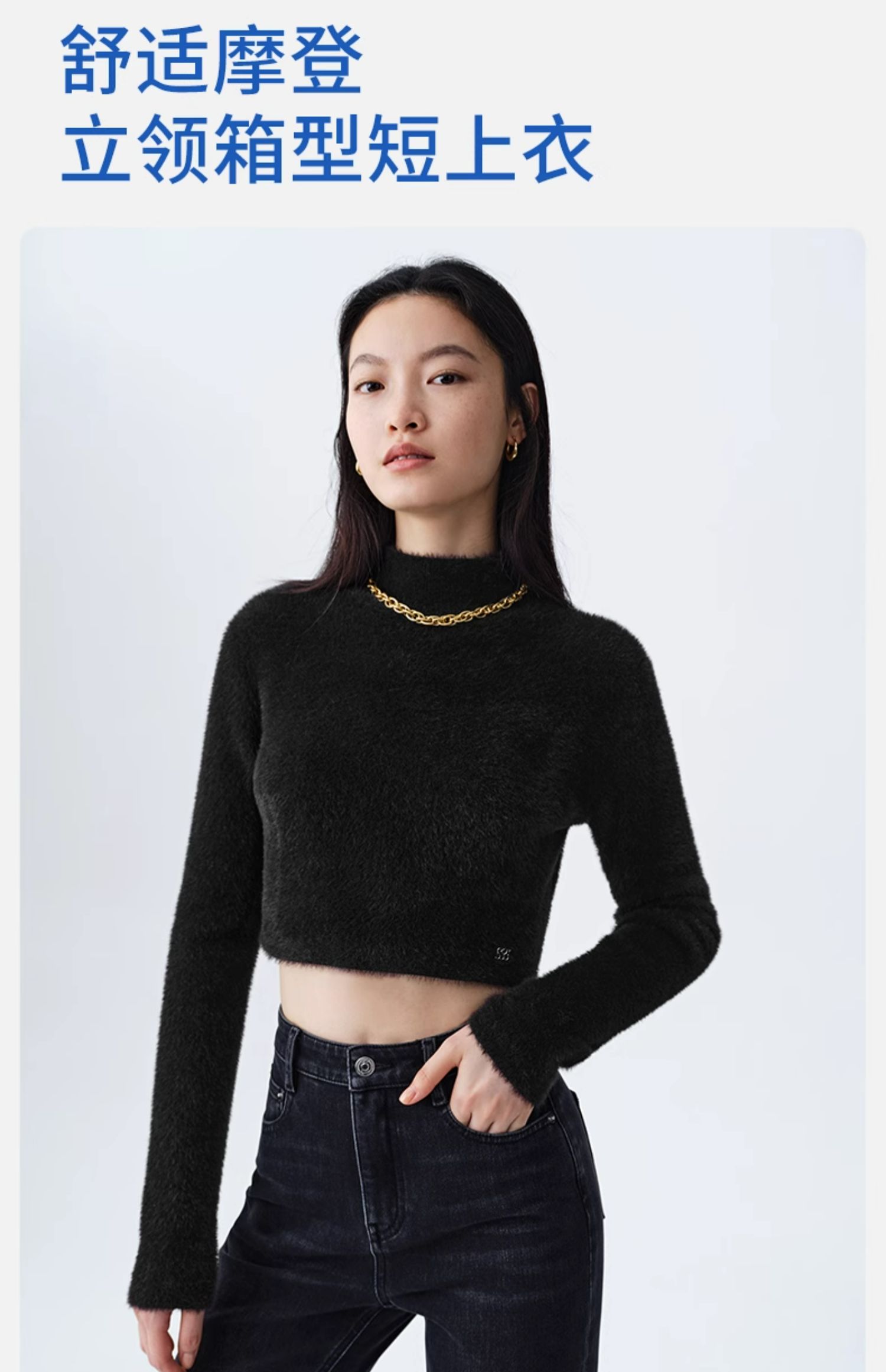 simplepieces毛织女SPS新品羽毛纱立领箱型短上衣