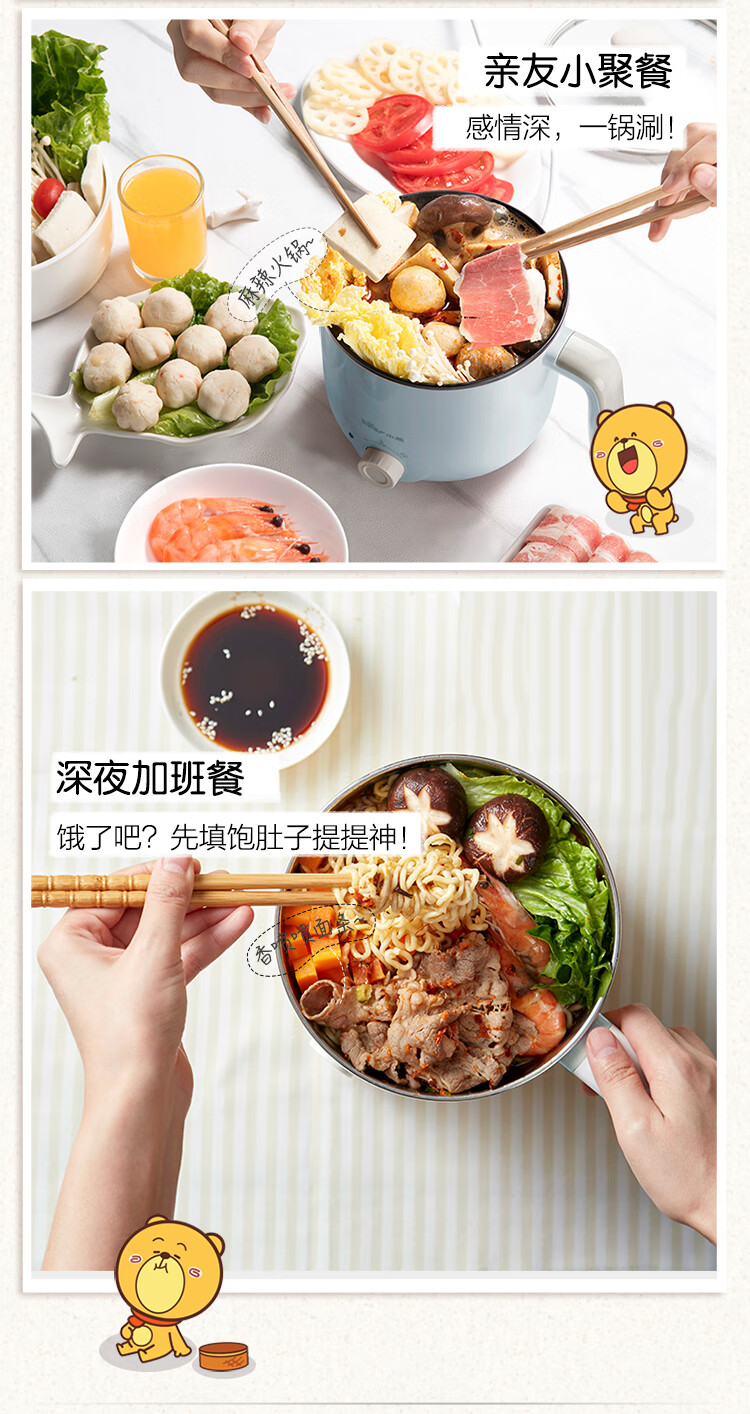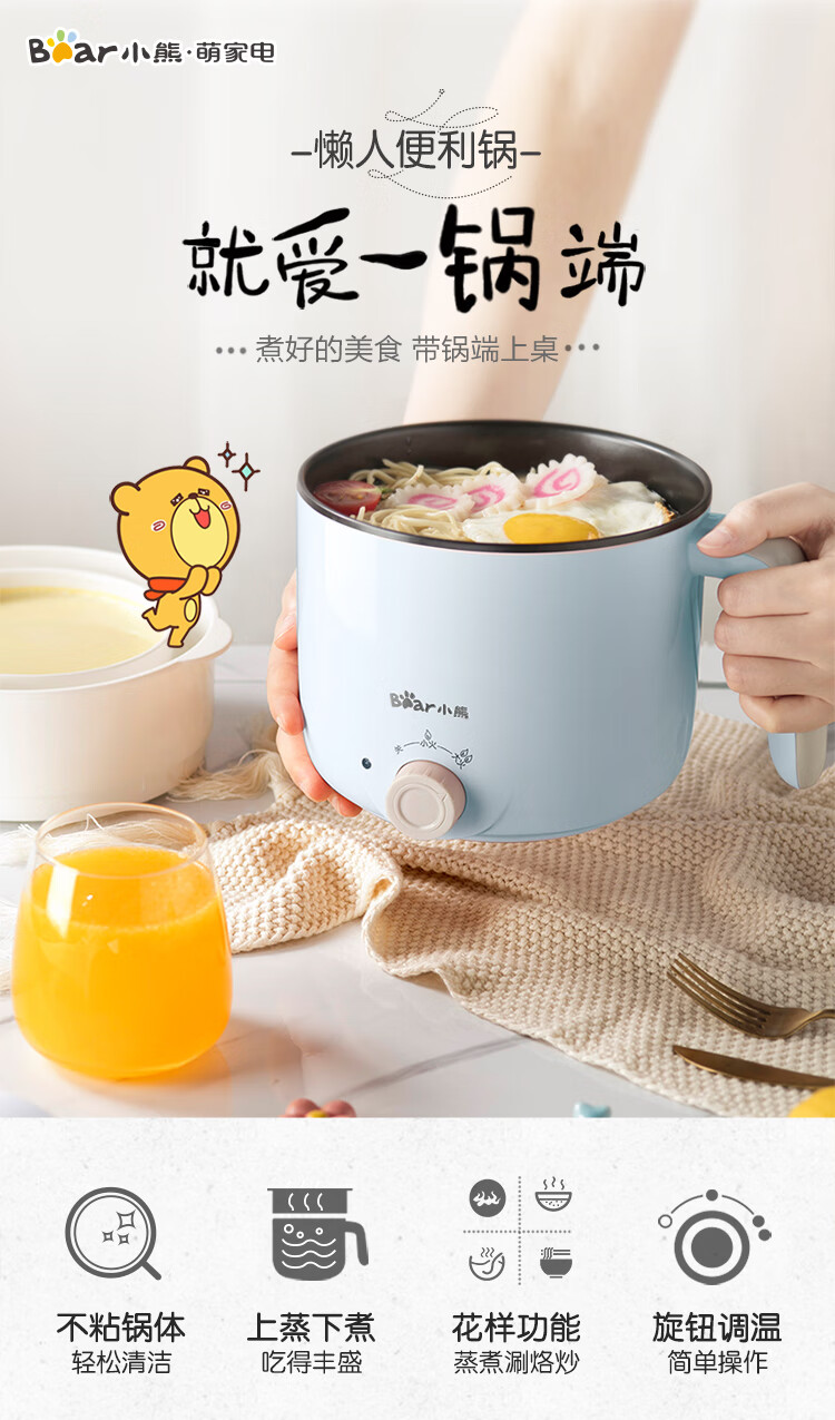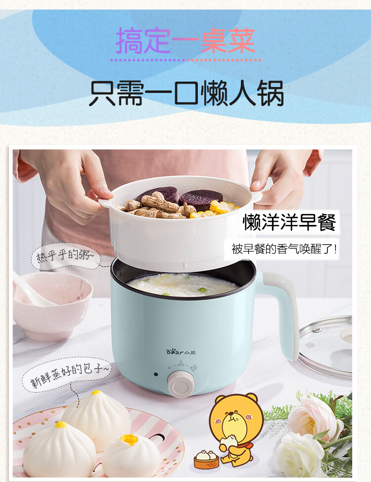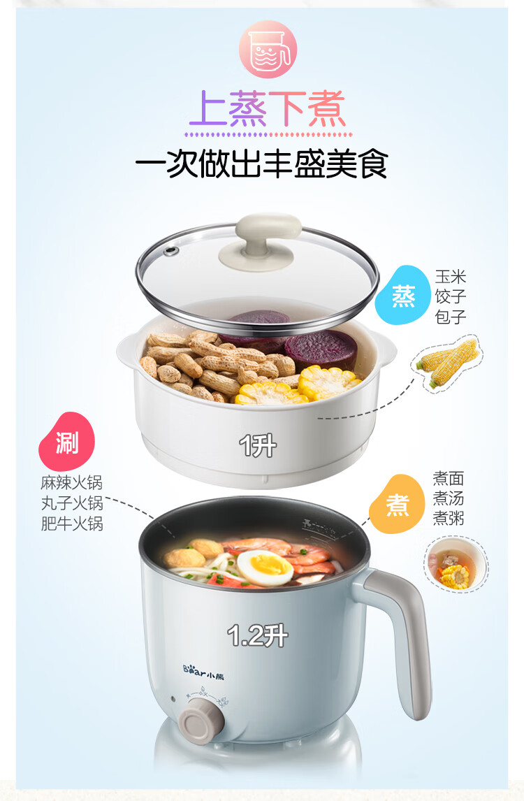 小熊(Bear)电煮锅 宿舍小锅 小电锅 电热锅蒸锅 学生寝室一体泡面火锅多功能多用途锅【ZMD安心系列】 DRG-C30H1