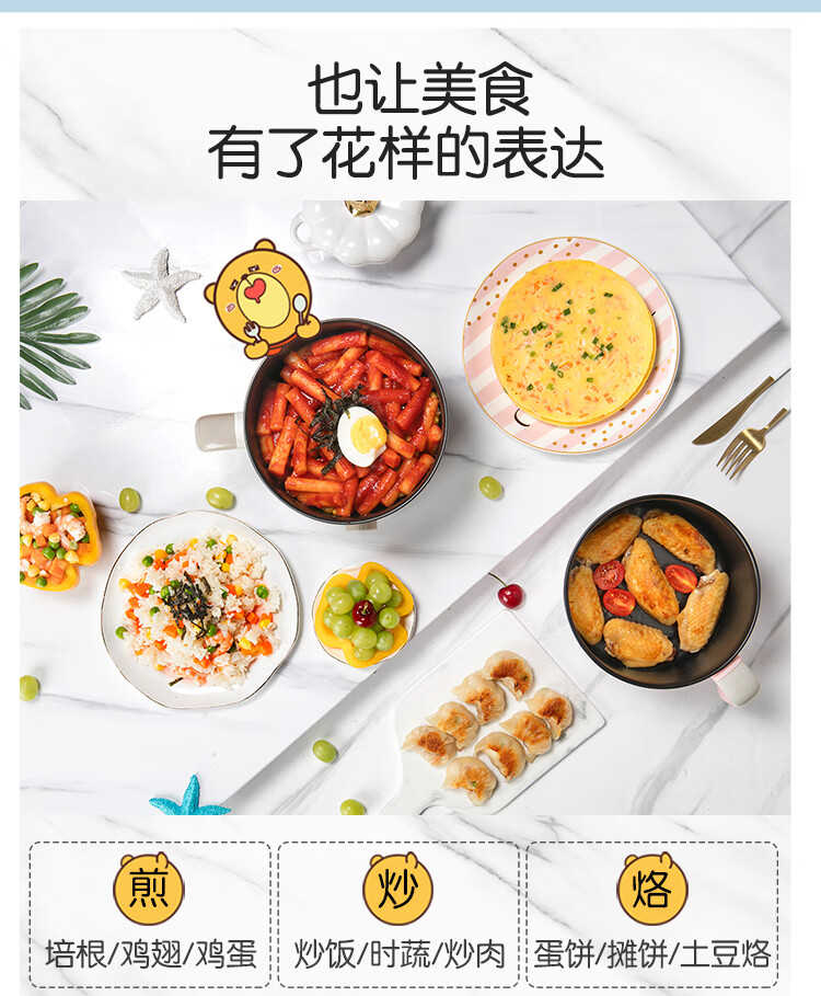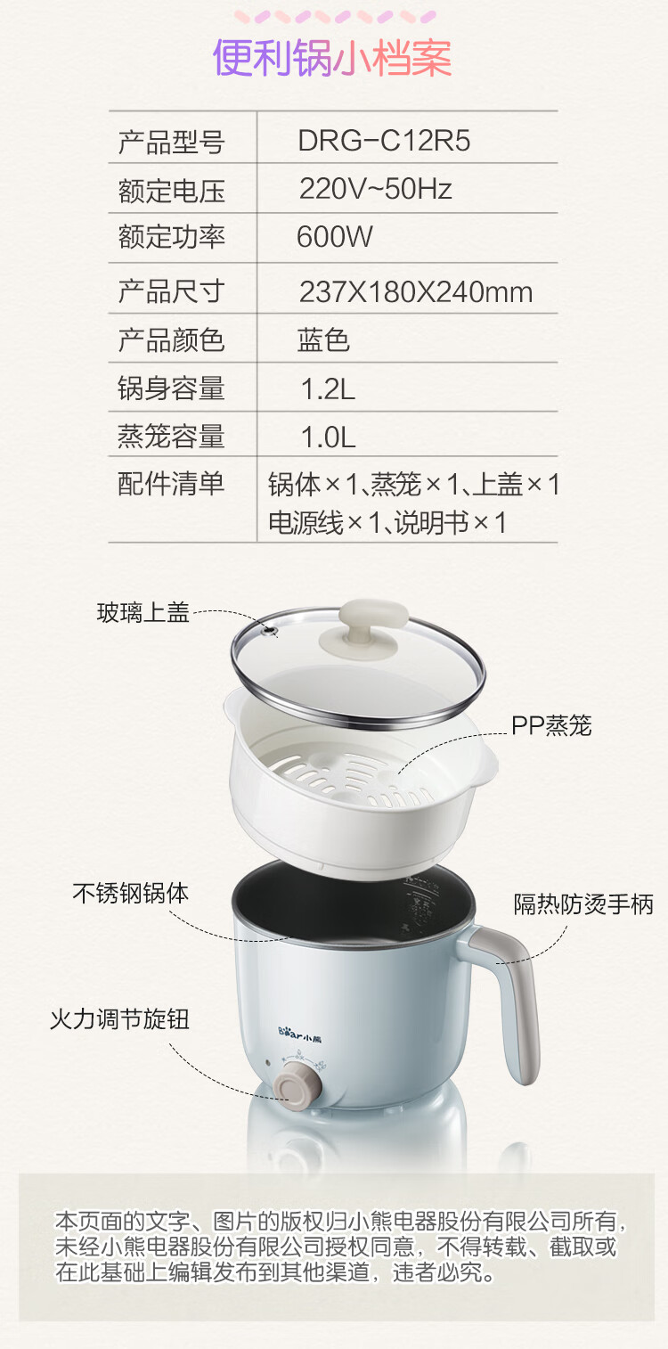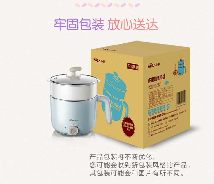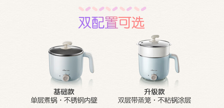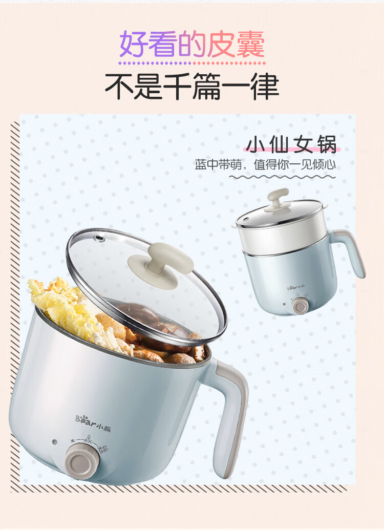 小熊(Bear)电煮锅 宿舍小锅 小电锅 电热锅蒸锅 学生寝室一体泡面火锅多功能多用途锅【ZMD安心系列】 DRG-C30H1