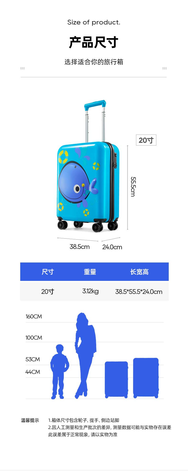 银座小鲸鱼系列-高颜值20寸儿童行李箱拉杆箱学生旅行箱A-6732L