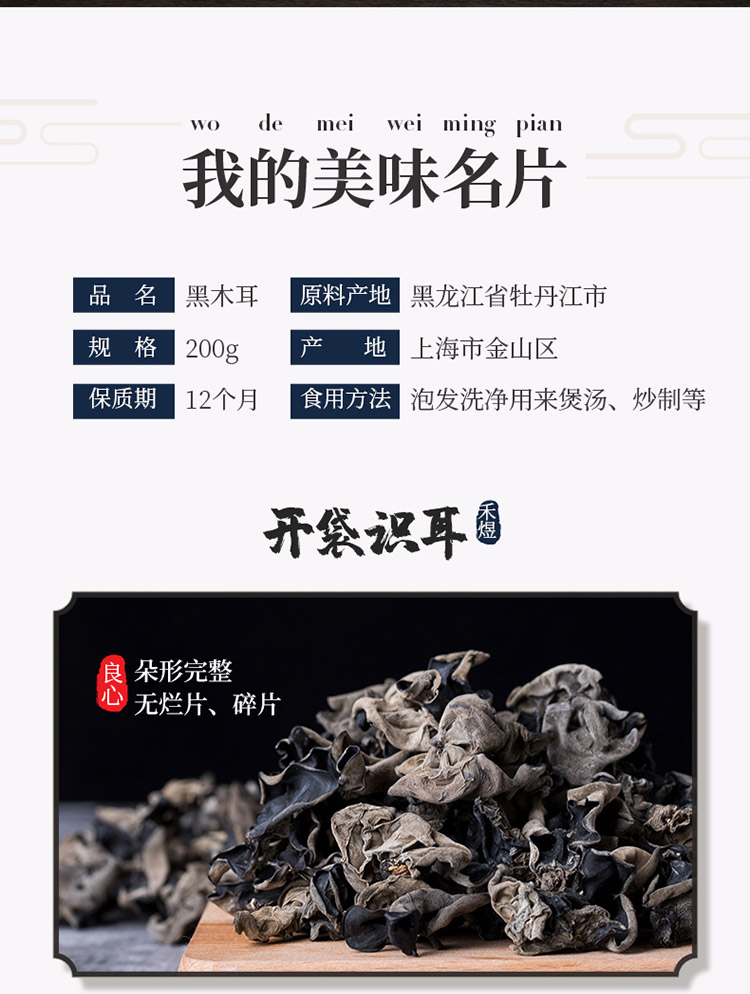 禾煜 东北黑龙江黑木耳 肉厚剪脚 南北干货 火锅煲汤材料 200g