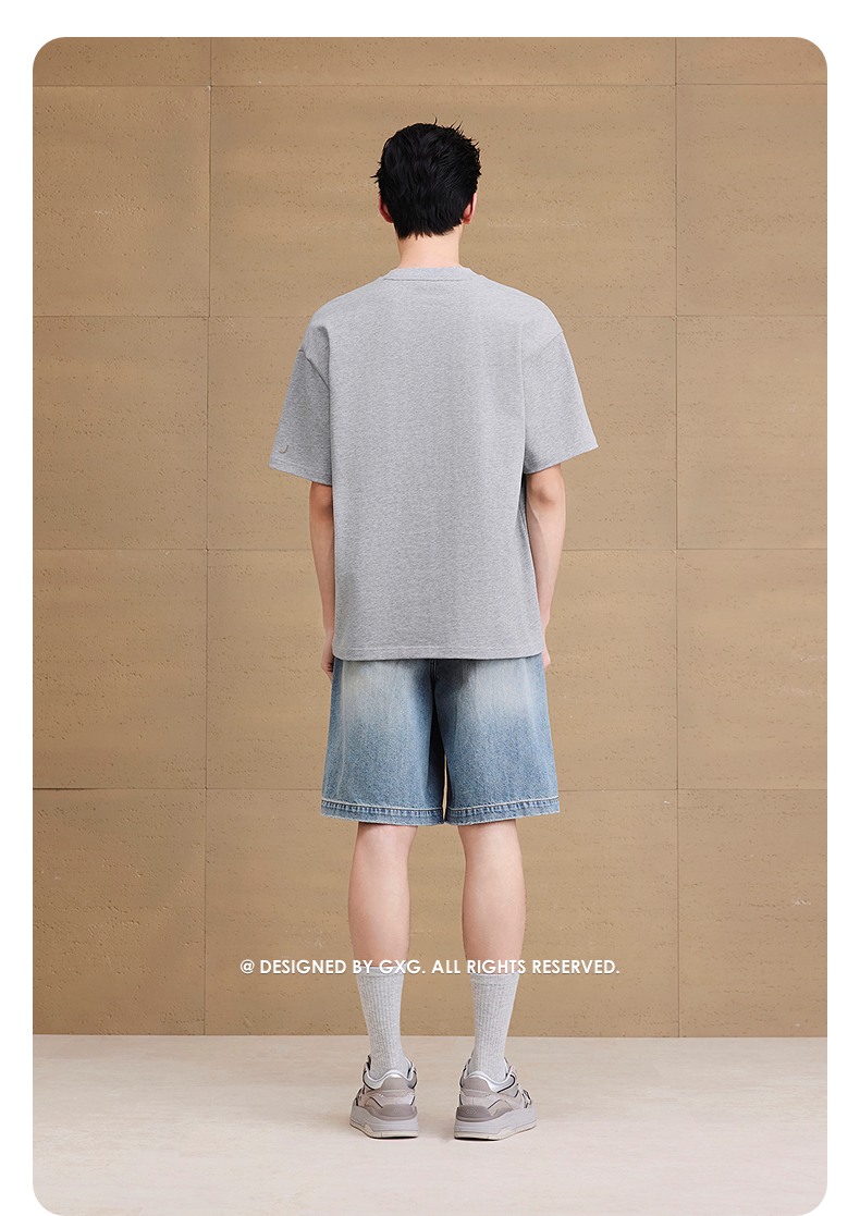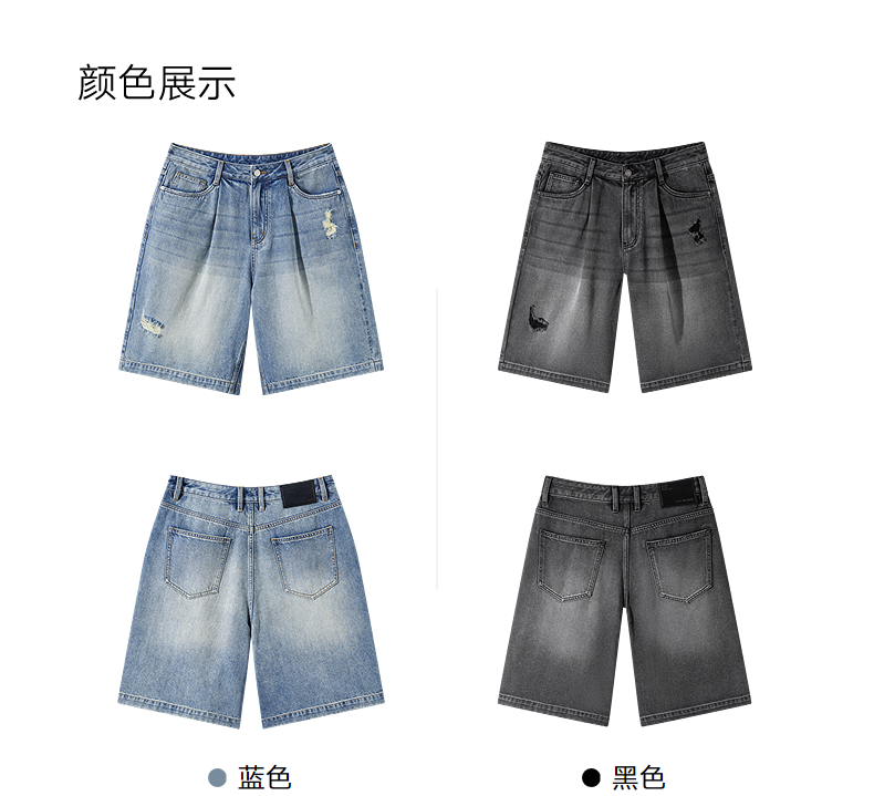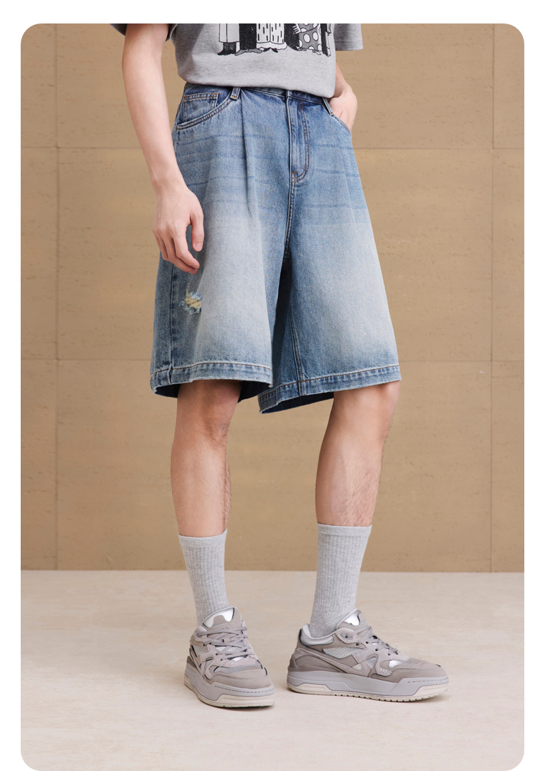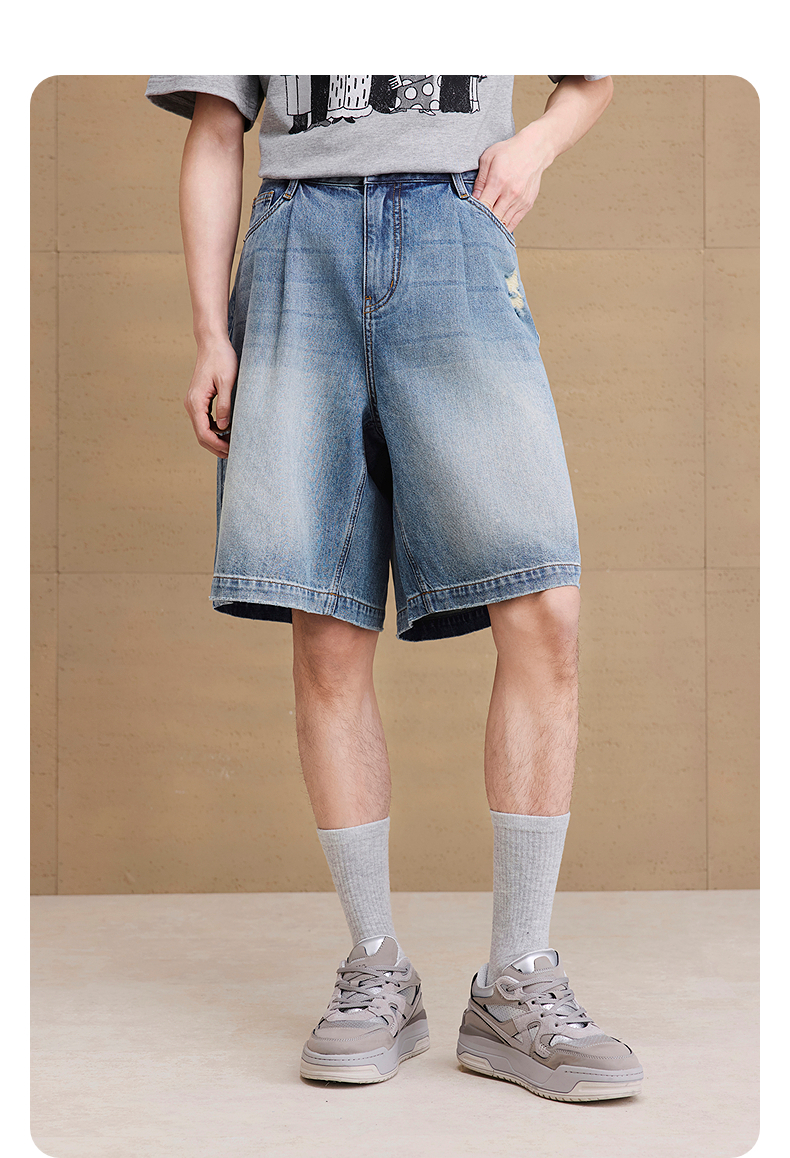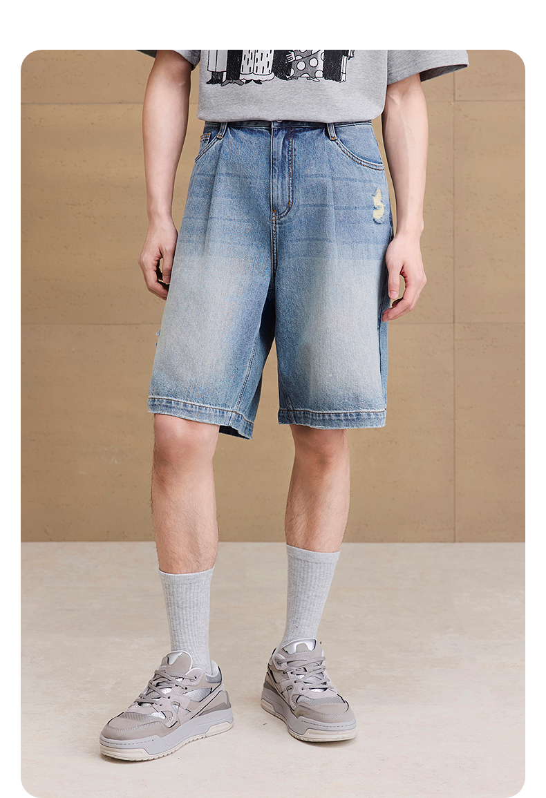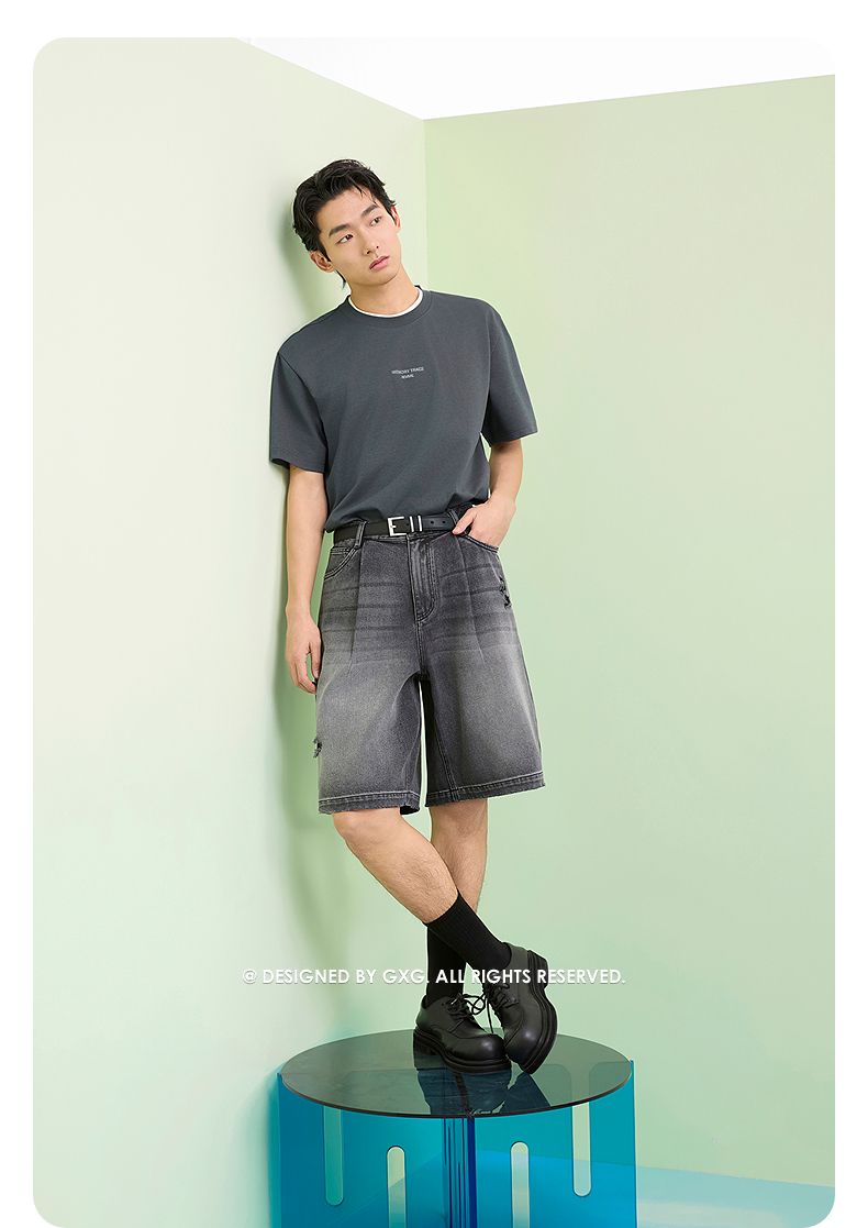 GXG男装 复古水洗牛仔短裤磨破设计休闲短裤五分裤 2025夏季新品