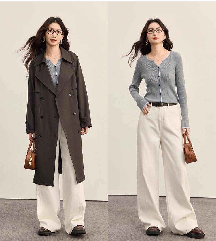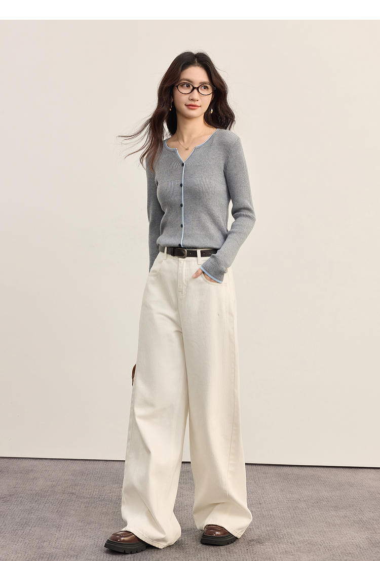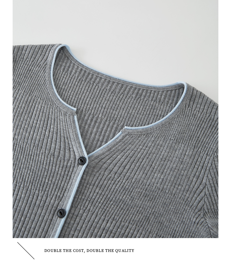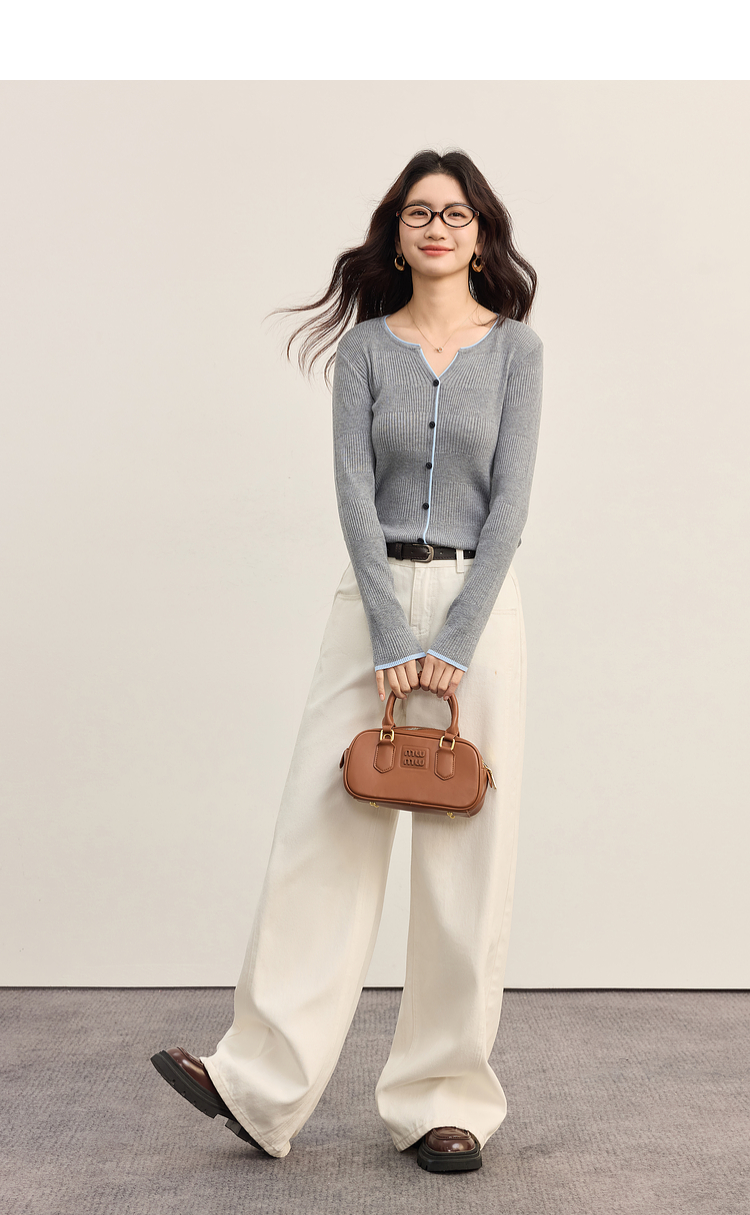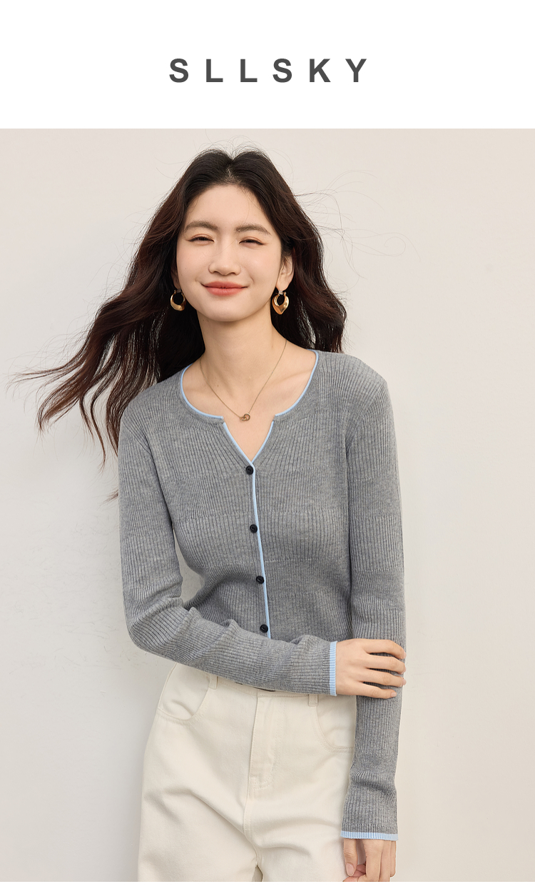 【09/03新品】熙世界桑蚕丝羊毛针织衫女士长袖2025秋季新款撞色边坑条软糯上衣