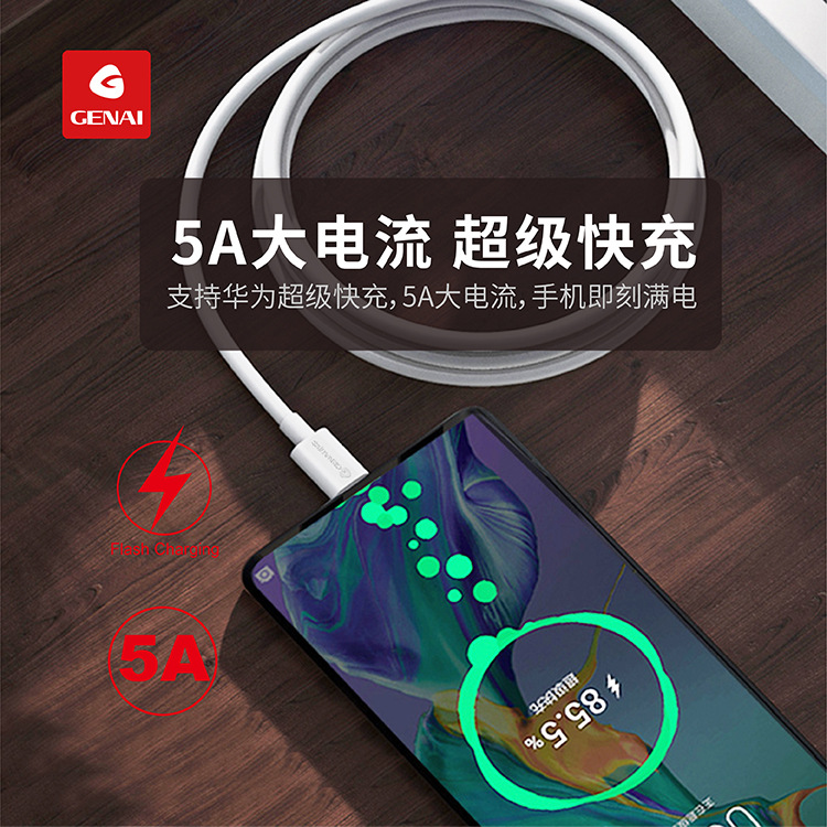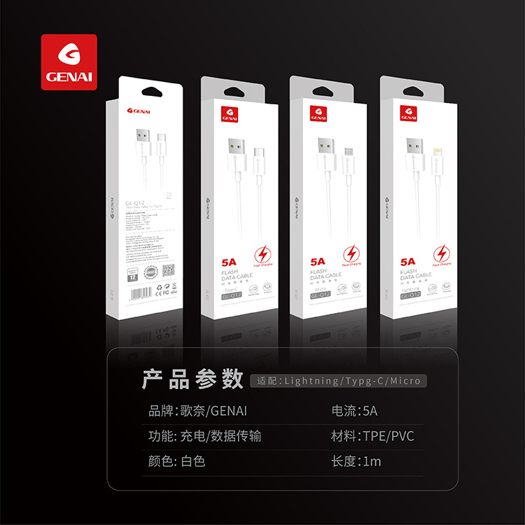 歌奈/GENAI Q12小牛5A大电流Type-c接口闪充快充数据线通用一盒装JPY带授权招加盟代理