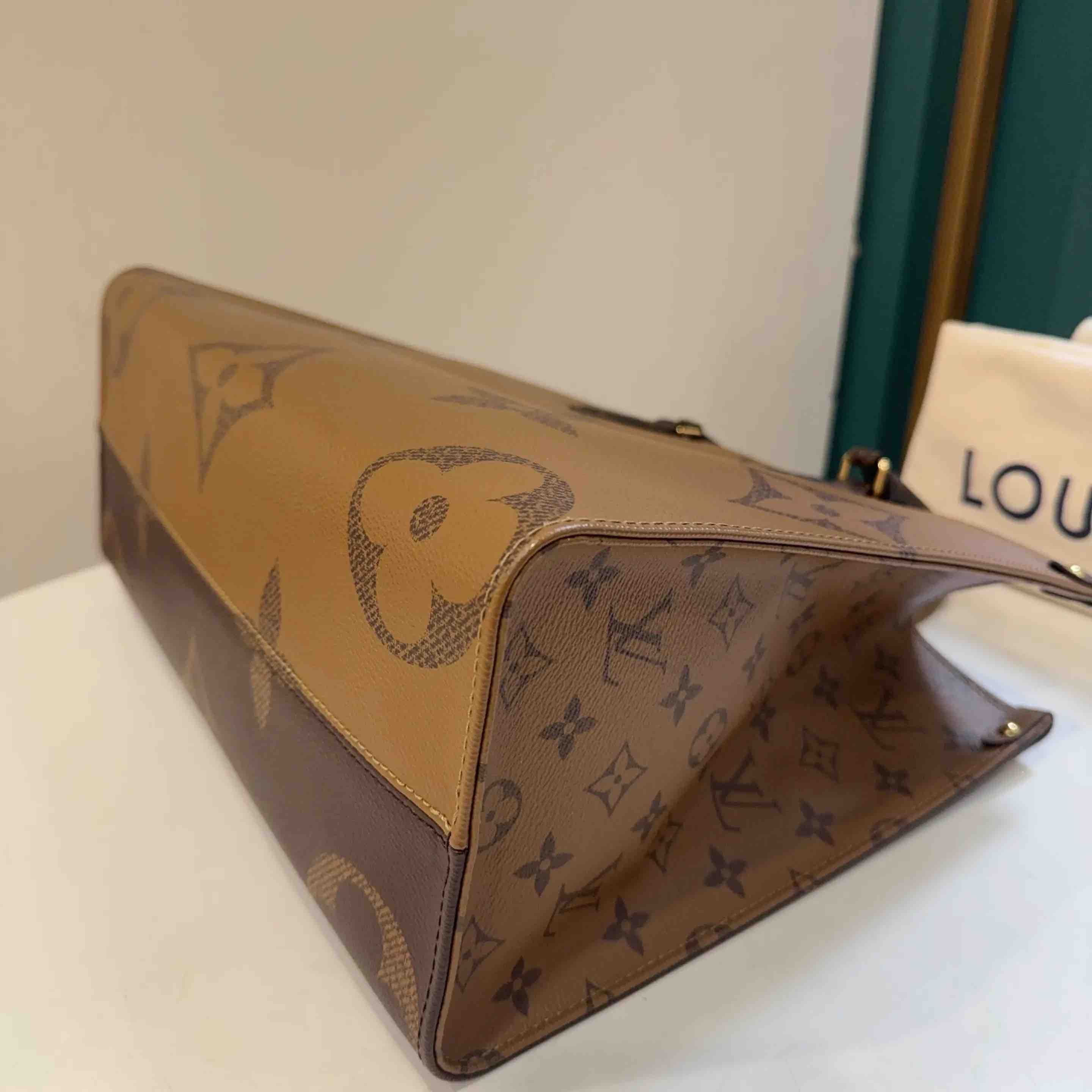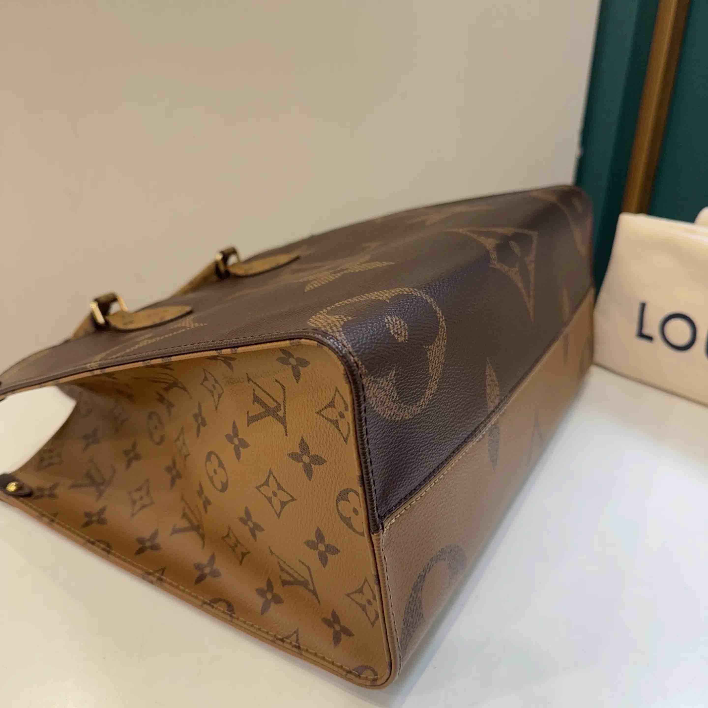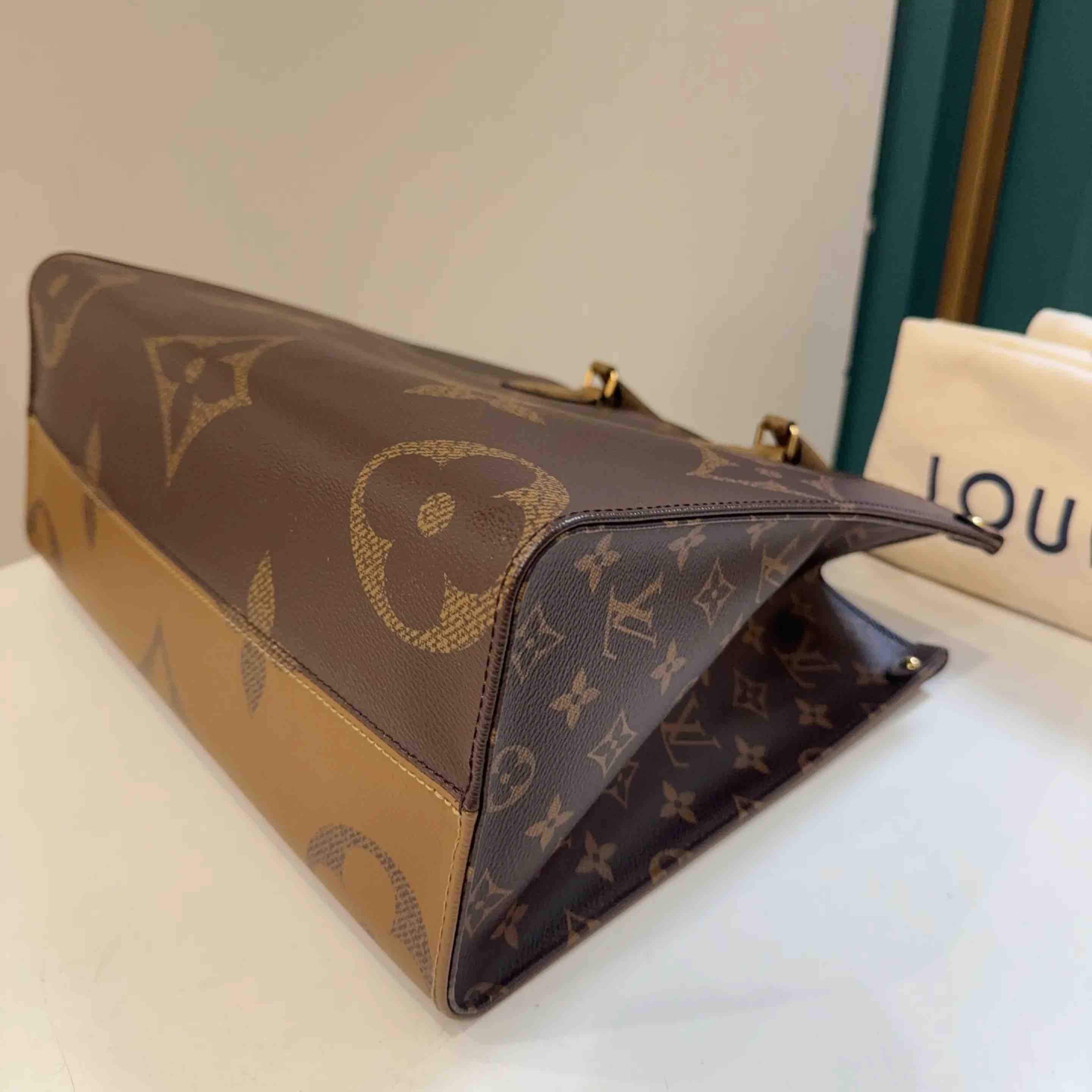 【商品详情】正品二手 LV on the go 老花 中号 单肩包🤎 98新 33×26 芯片款 配件:防尘袋。容量超大 芯片防伪 老花永不过时