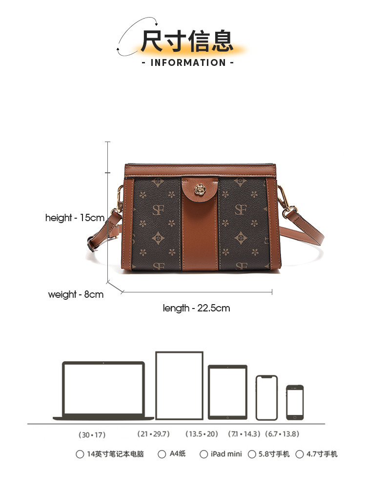 Safiya/索菲娅2023新款印花托特包时尚单肩包包女式斜挎包女包SF9151035Y