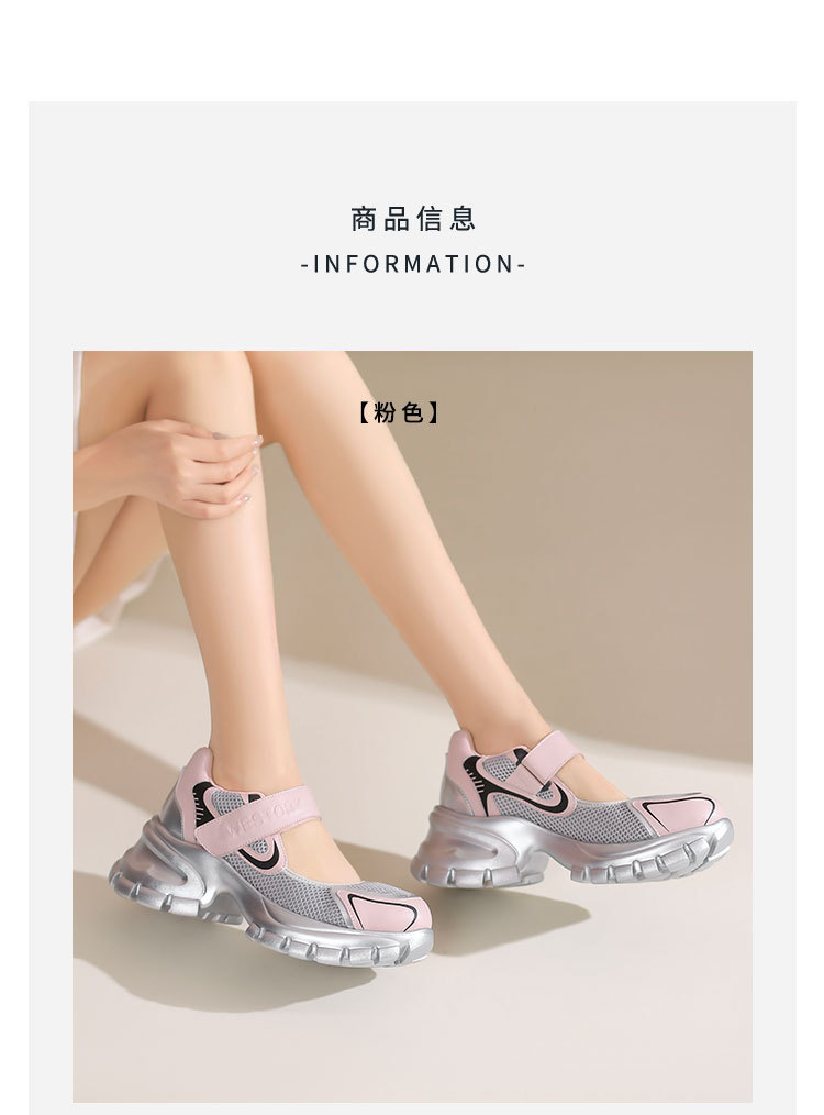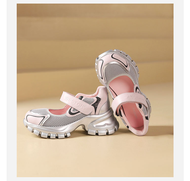 westory春夏新款厚底增高超轻魔术贴网面透气老爹鞋W24CE74631