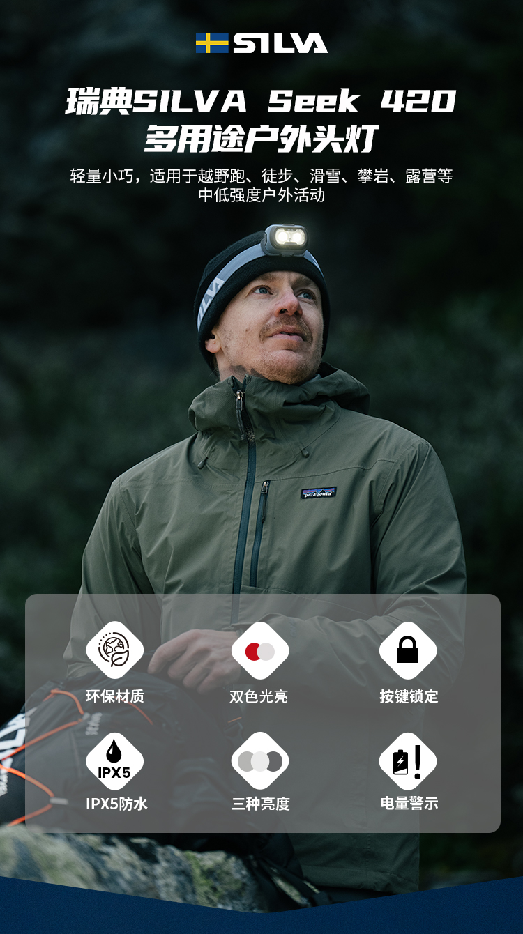 瑞典SILVA Seek 420 多用途环保户外头灯环保轻量防水马拉松越野跑夜跑专用