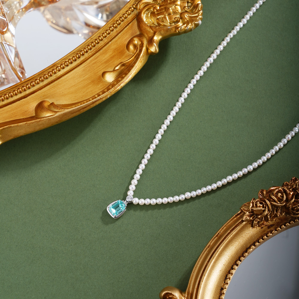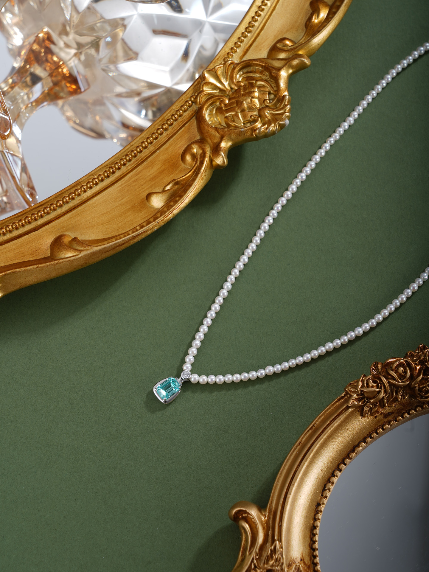 子佩集【南岸莹澈】银S925珍珠惜王妃项链【ZZXL048】蓝方块2602