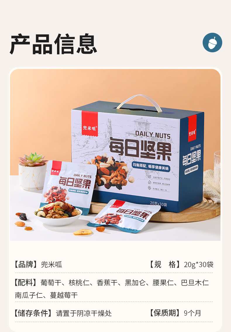 【每日一袋!元气满满】每日坚果30包礼盒装新年混合干果炒货综合果仁儿童孕妇零食无添加,每时每刻,随时享受美味。ry
