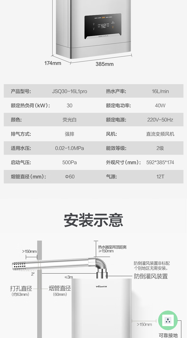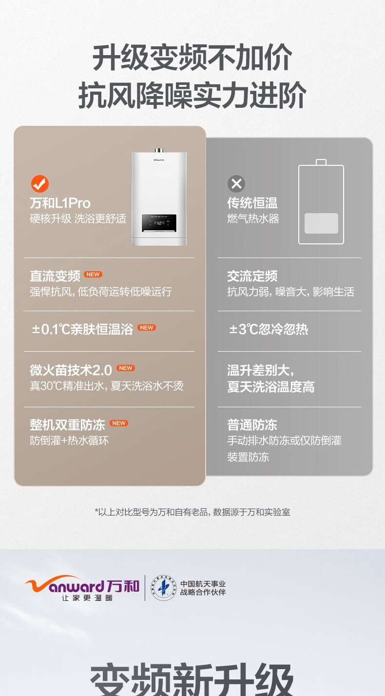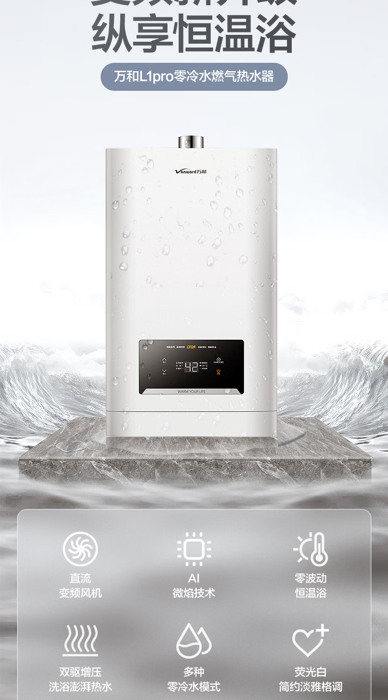 万和(Vanward)零冷水燃气热水器直流变频双驱增压JSQ30-16L1pro JSQ30-16L1pro(16升天然气)