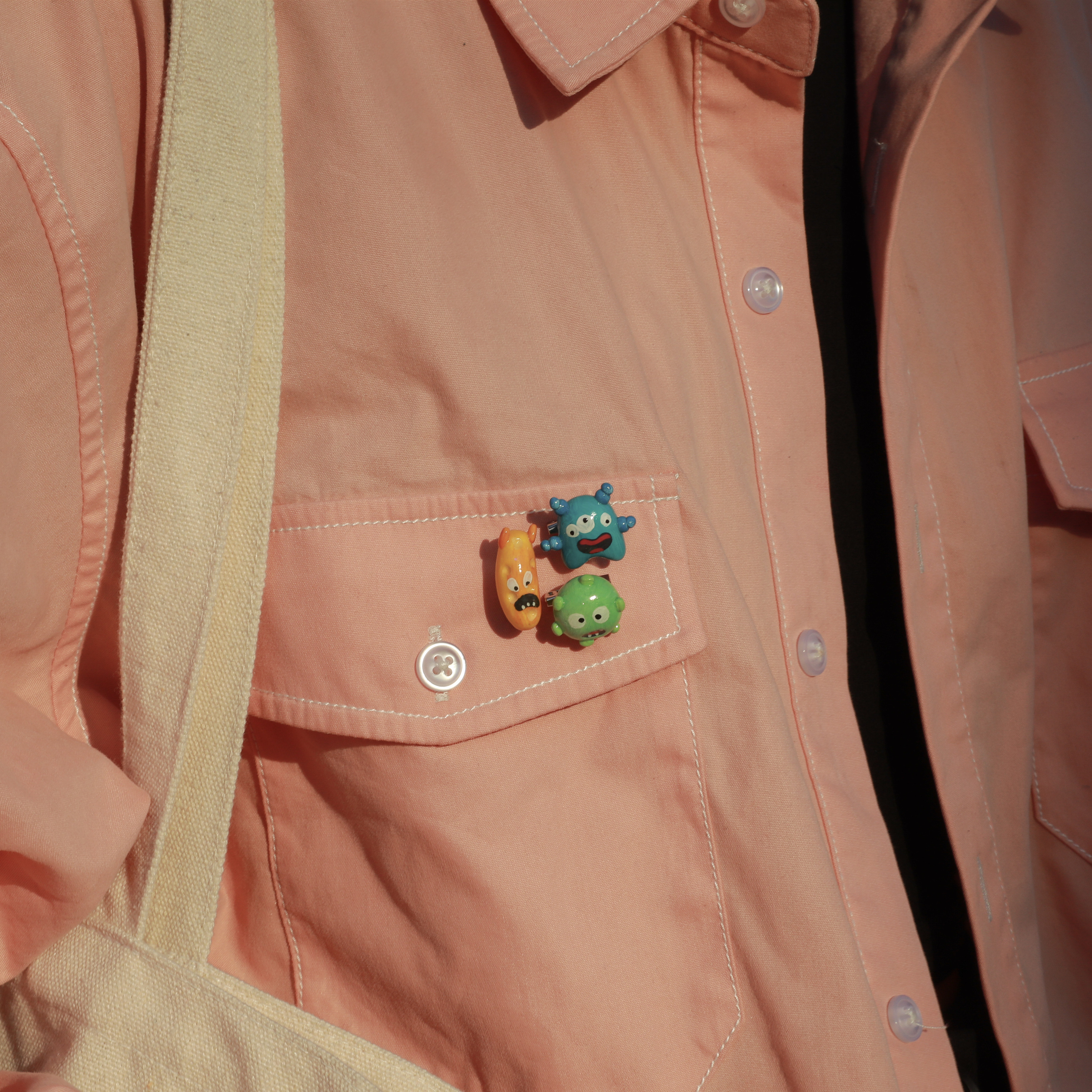 七口『迷你绿色细菌病毒』|手绘黏土胸针