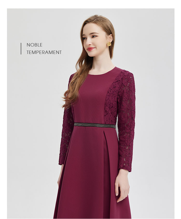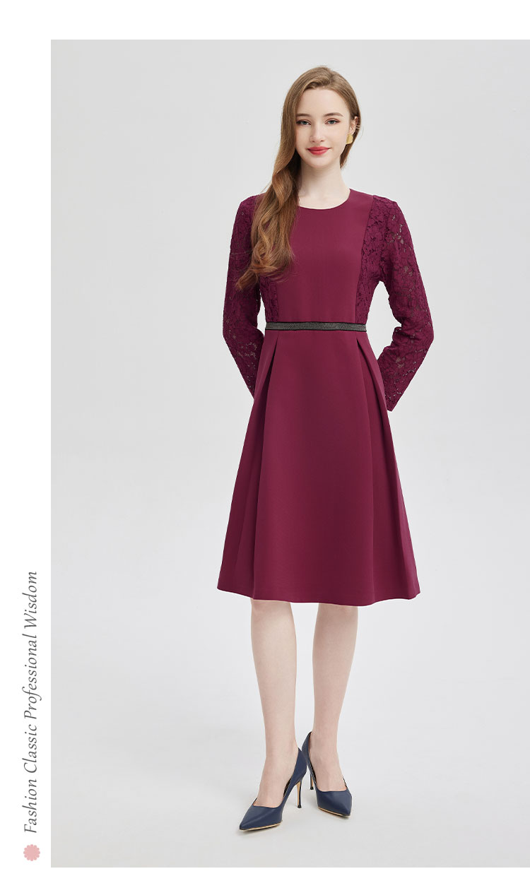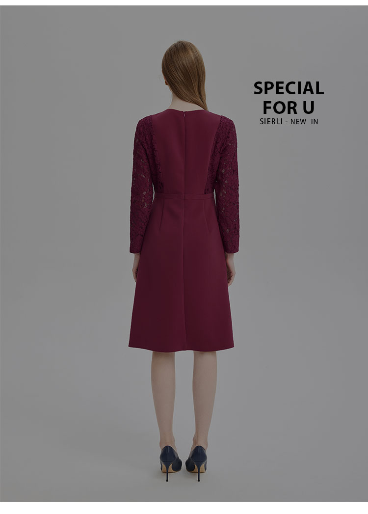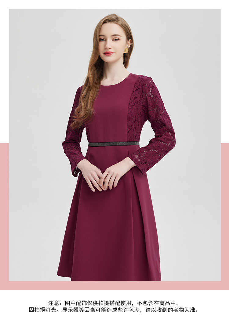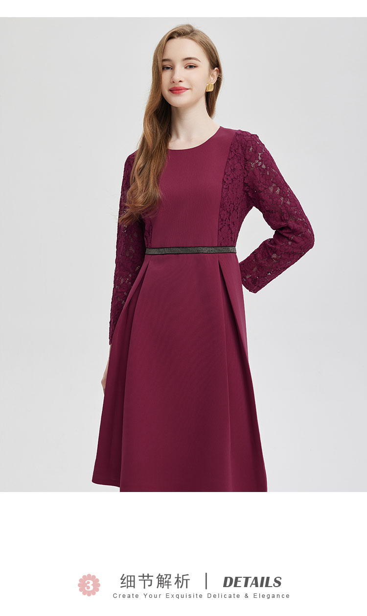 PE845斯尔丽2024新款蕾丝拼接款赫本风手工装饰高级感连衣裙