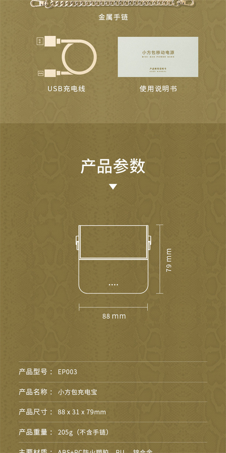 【女神好礼】迷你充电宝小方包 小巧便携大容量10000毫安移动电源礼物