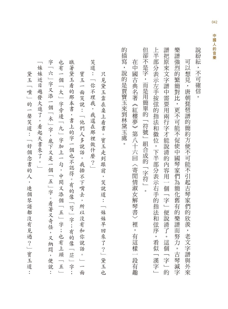 為令讀者能夠了解綿延千年、囊括五十六個民族,不可不謂博大精深的中國音樂,知名音樂學家、非物質文化遺產保護專家田青老師選擇了二十六個主題、三十五首音樂,娓娓道來,誠如〈引子〉所言:「本書是寫給大家的。」