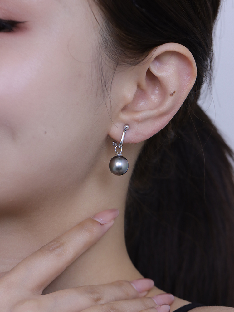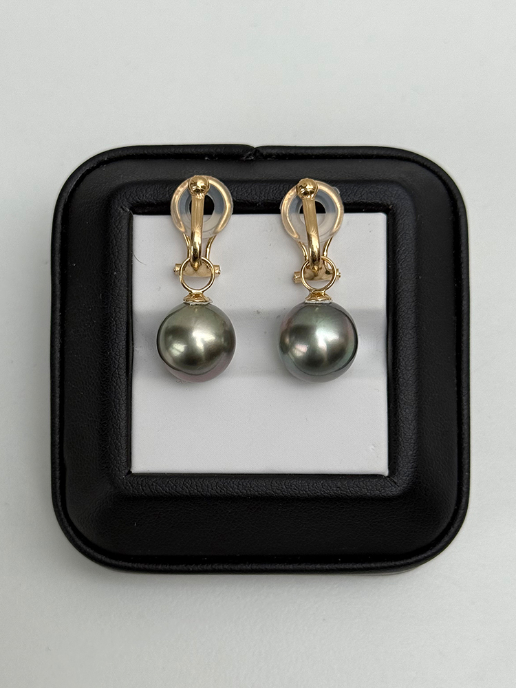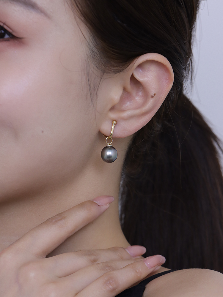 【挚友限定】(挂珠款)18K金可换珠耳夹 真科研大证 大溪地黑珍珠