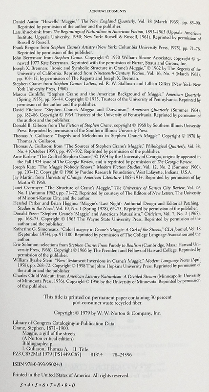 "Backgrounds and Sources" includes nonfictional accounts of urban life by Jacob Riis and others from which Crane drew, as well as discussions of Crane’s literary sources