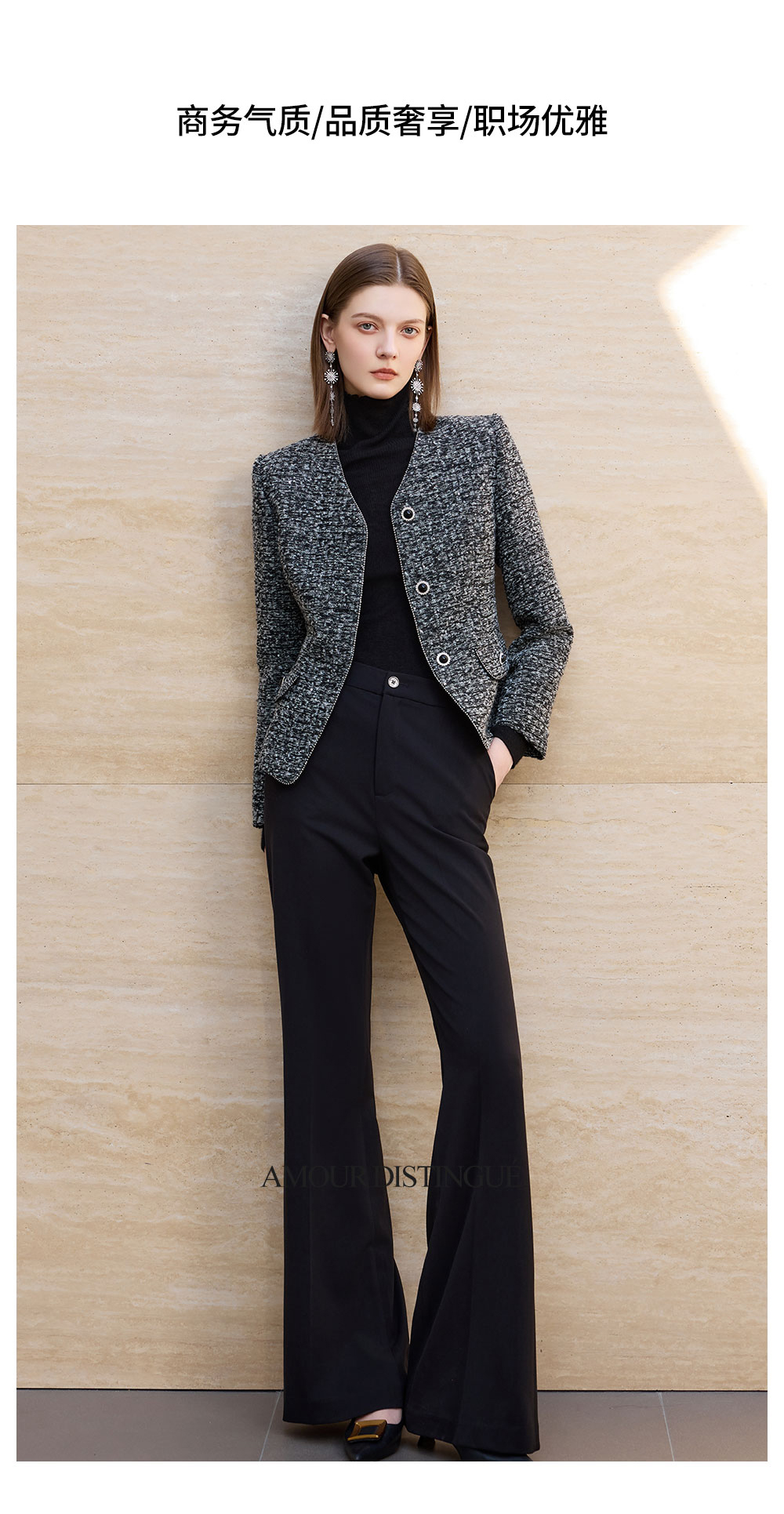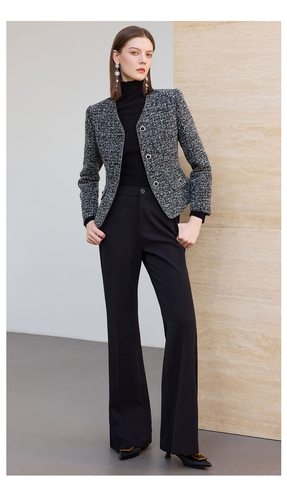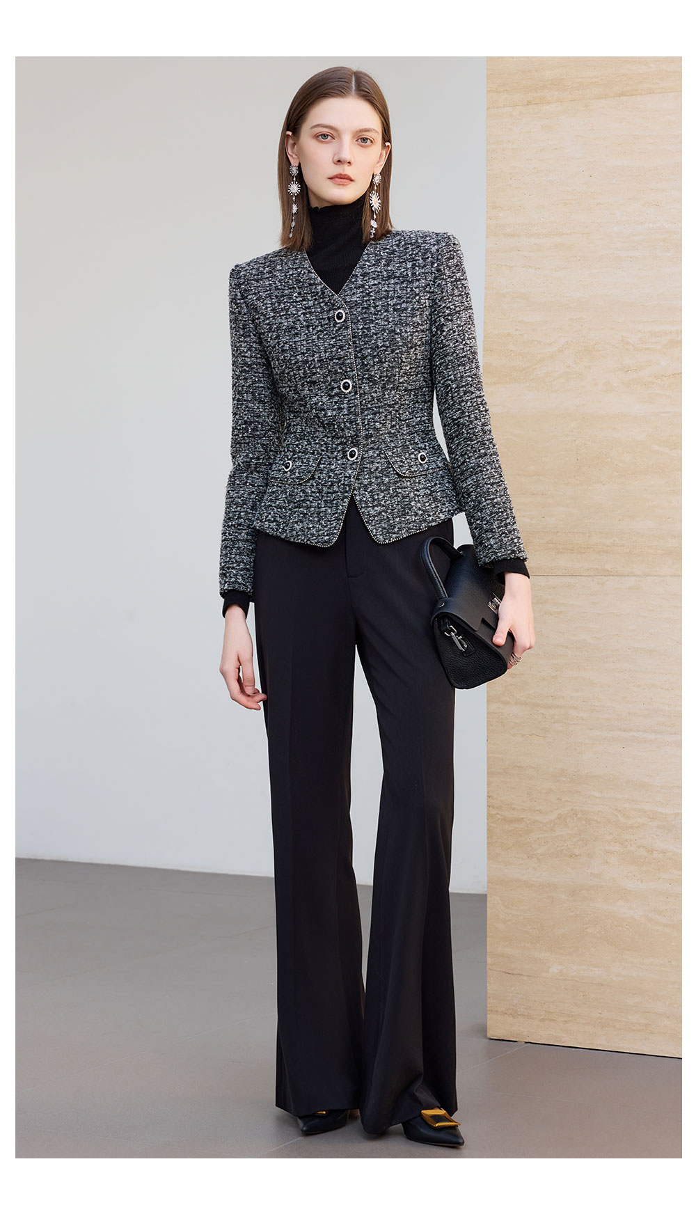 IWY/灰色通勤套装女秋冬高级感气质粗花呢外套阔腿裤两件套显高显瘦西裤C2492+P2357