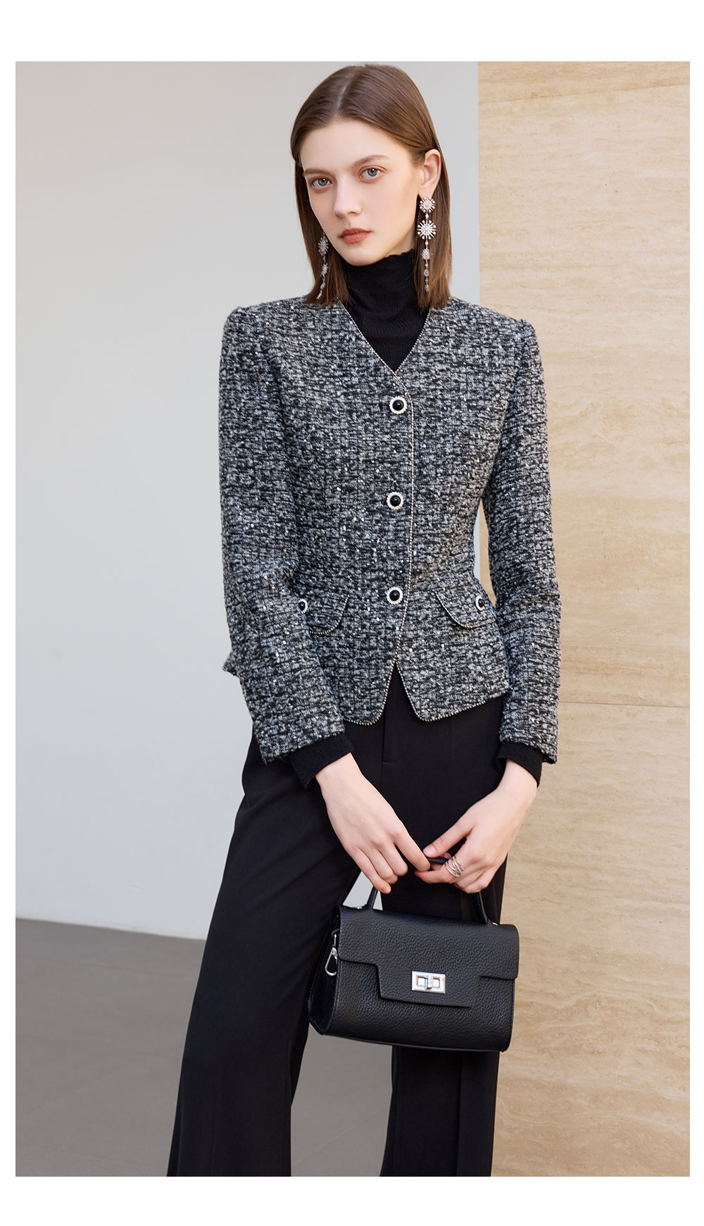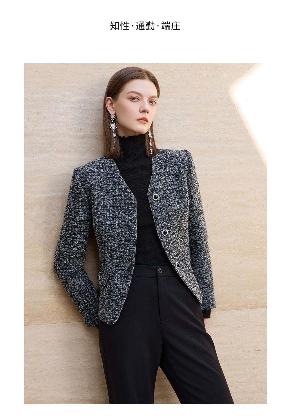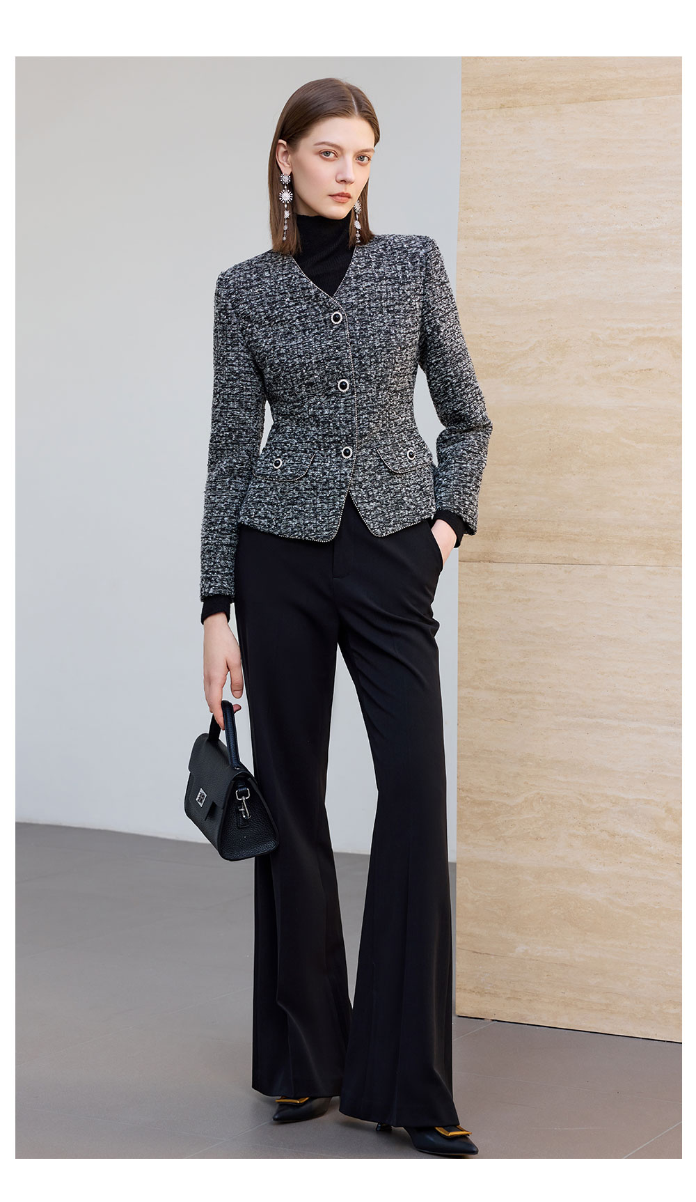 IWY/灰色通勤套装女秋冬高级感气质粗花呢外套阔腿裤两件套显高显瘦西裤C2492+P2357