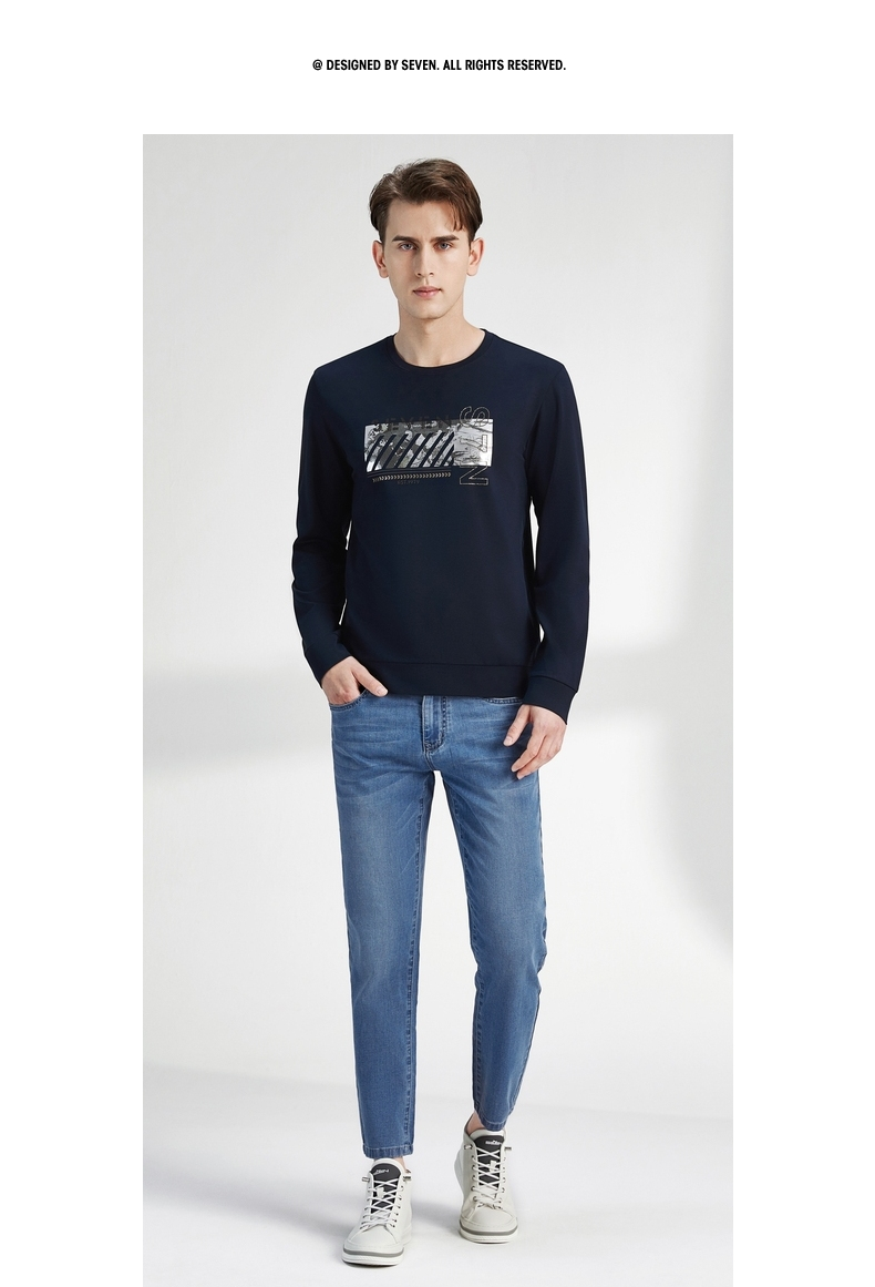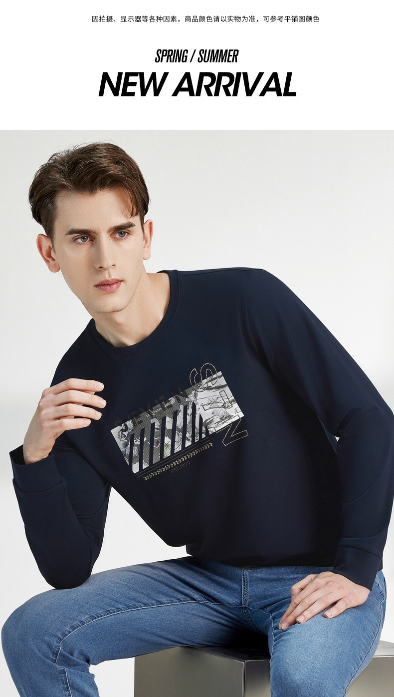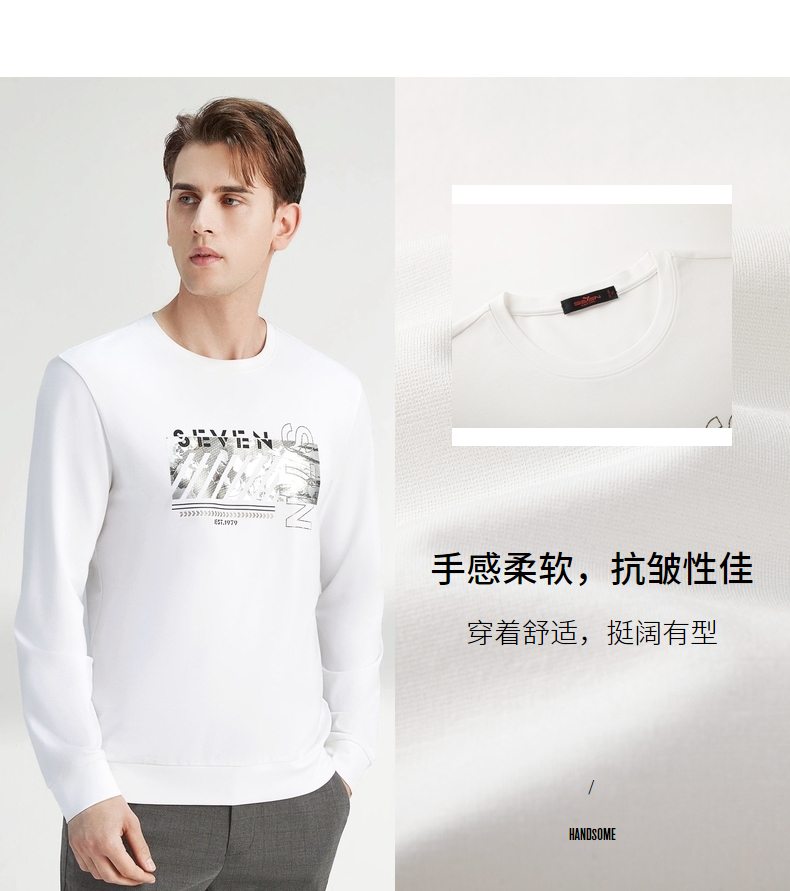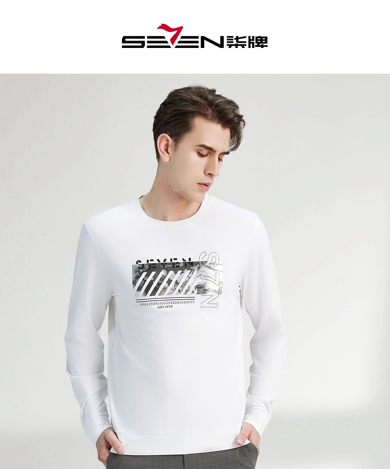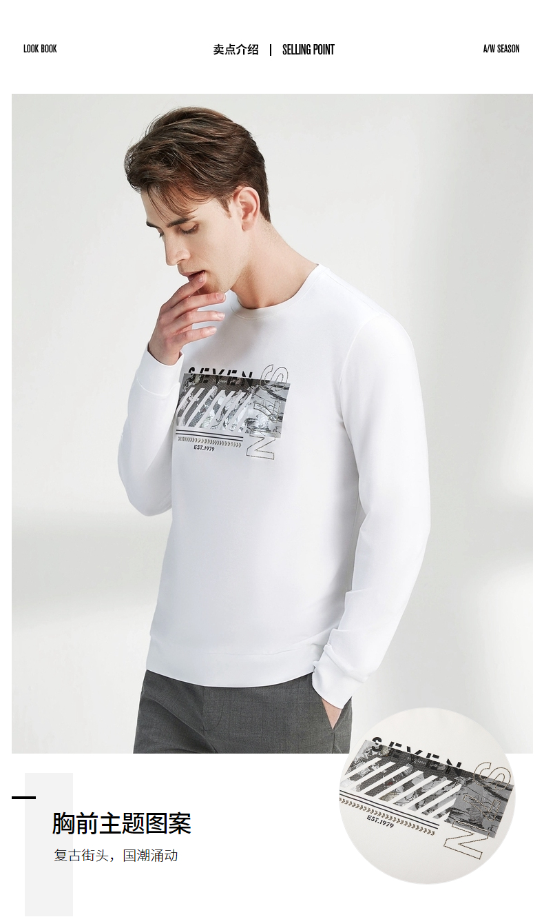 【特价】柒牌卫衣男春秋新款时尚青年小清新百搭长袖圆领套头t恤上衣 122W70080