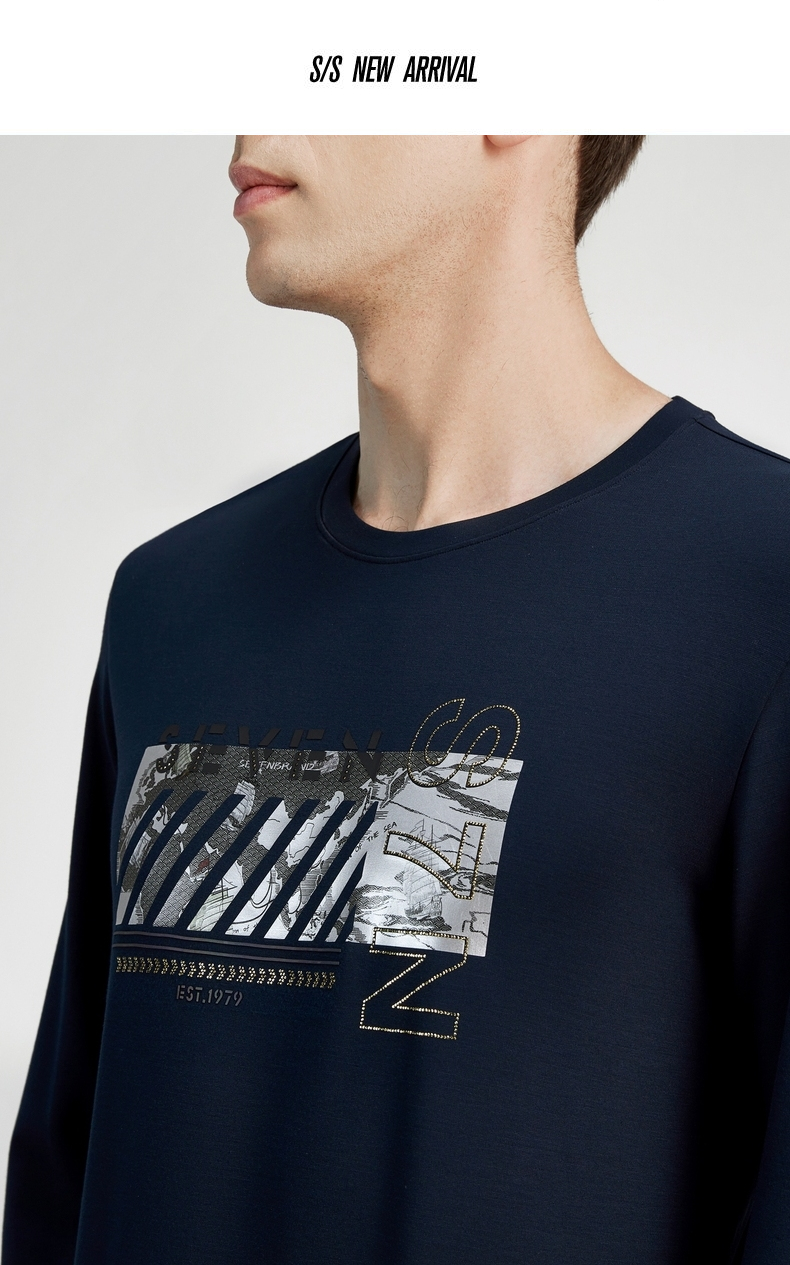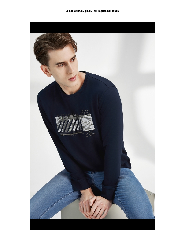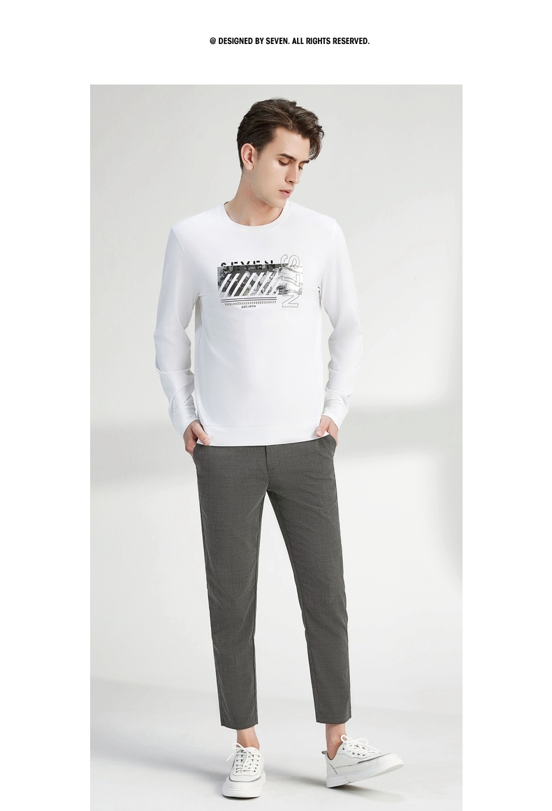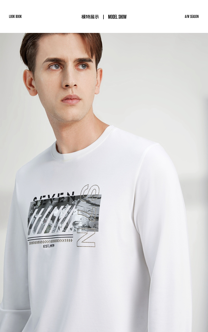 【特价】柒牌卫衣男春秋新款时尚青年小清新百搭长袖圆领套头t恤上衣 122W70080