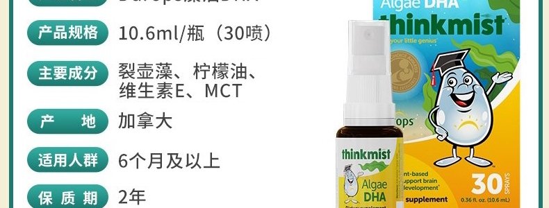 【保税】加拿大 Ddrops 藻油DHA 10.6ml喷剂 适合六个月以上宝宝