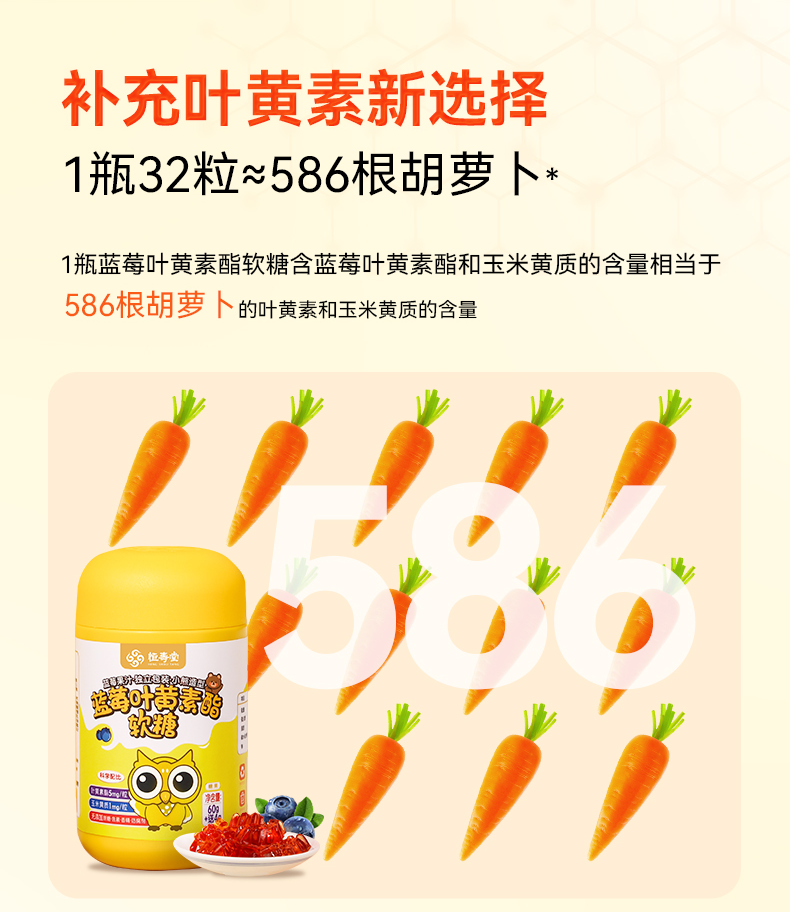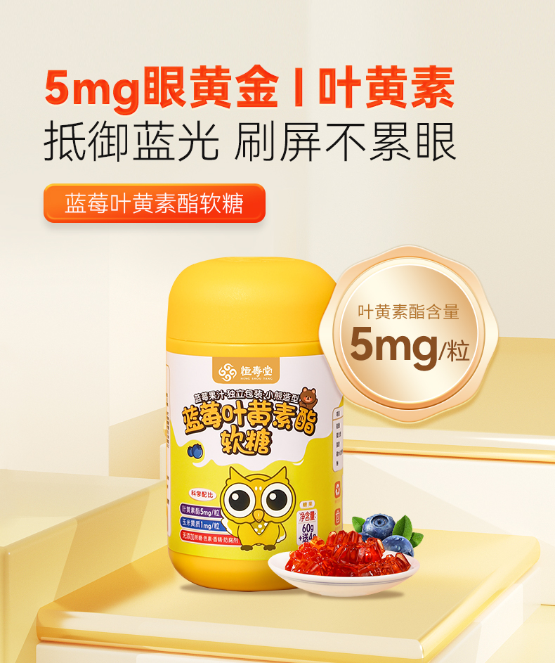 【拍1发4】恒寿堂叶黄素酯蓝莓软糖 天然植物果胶 守护孩子视力