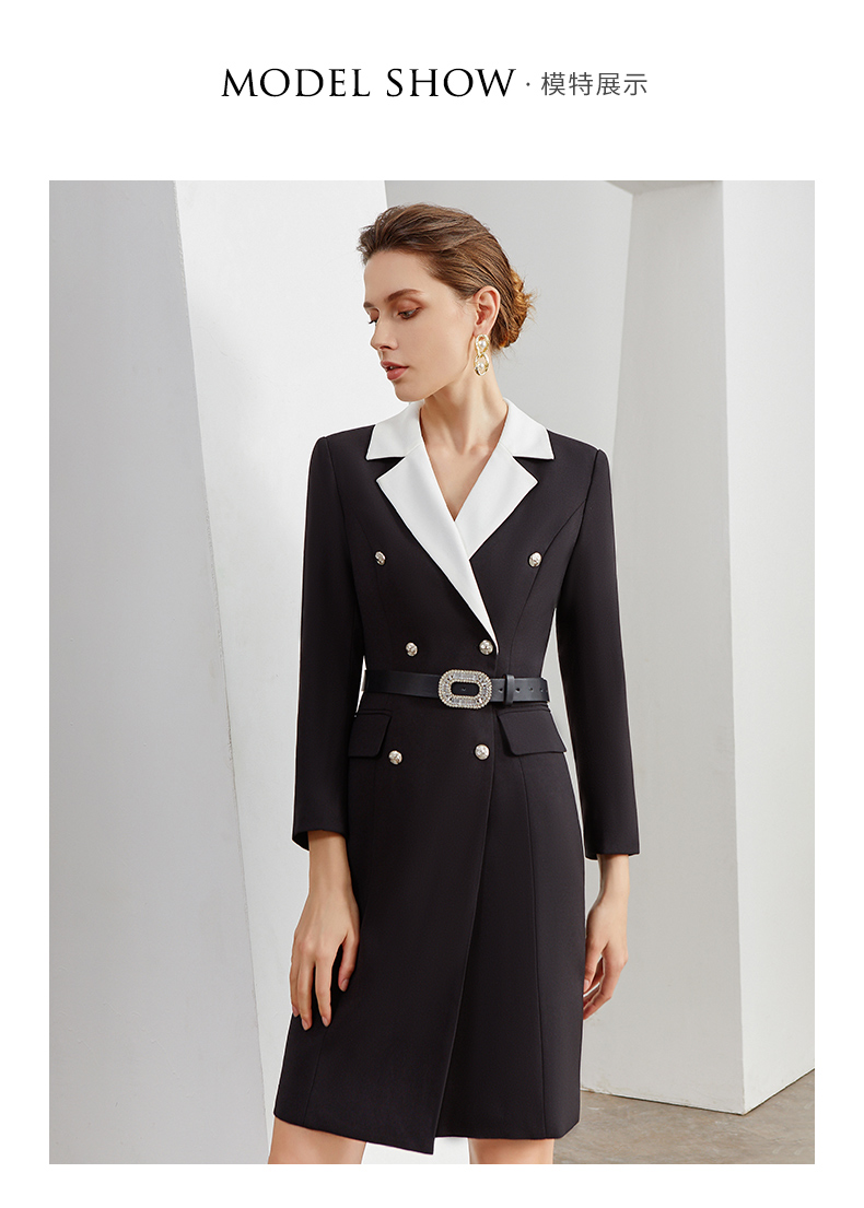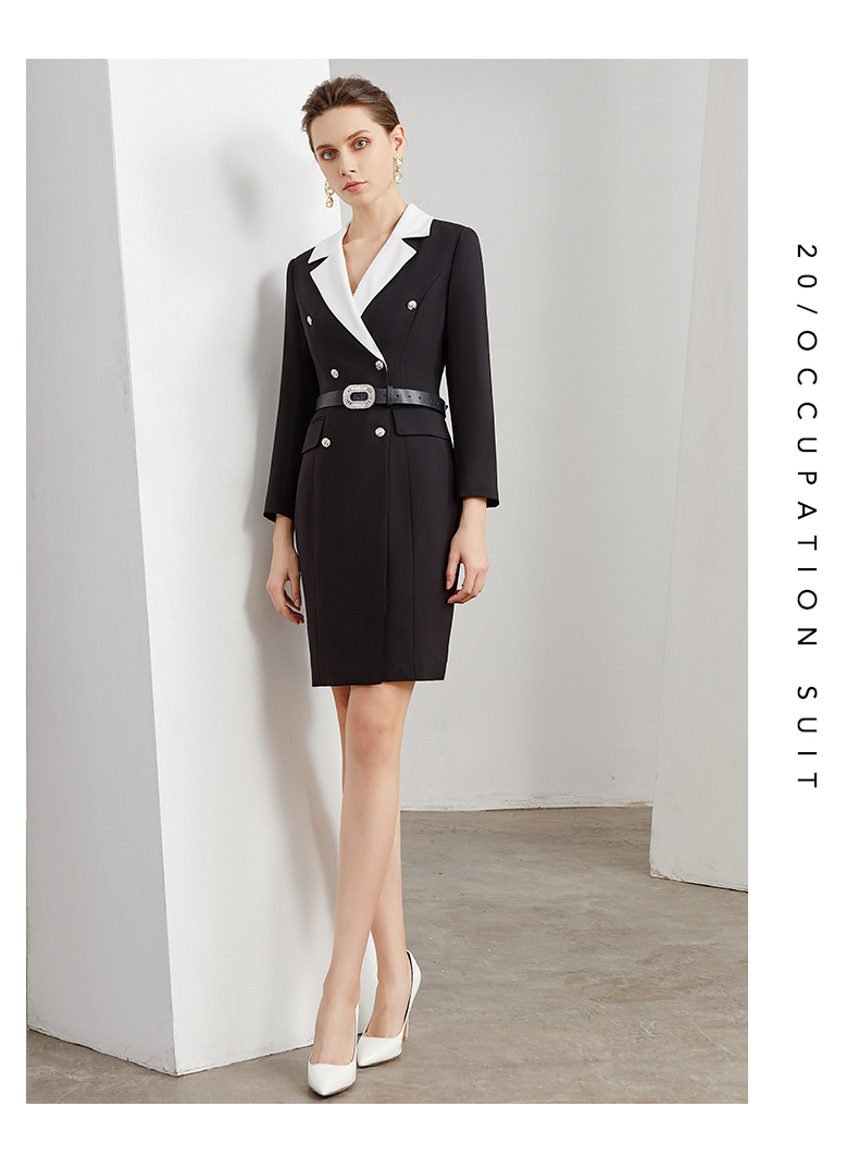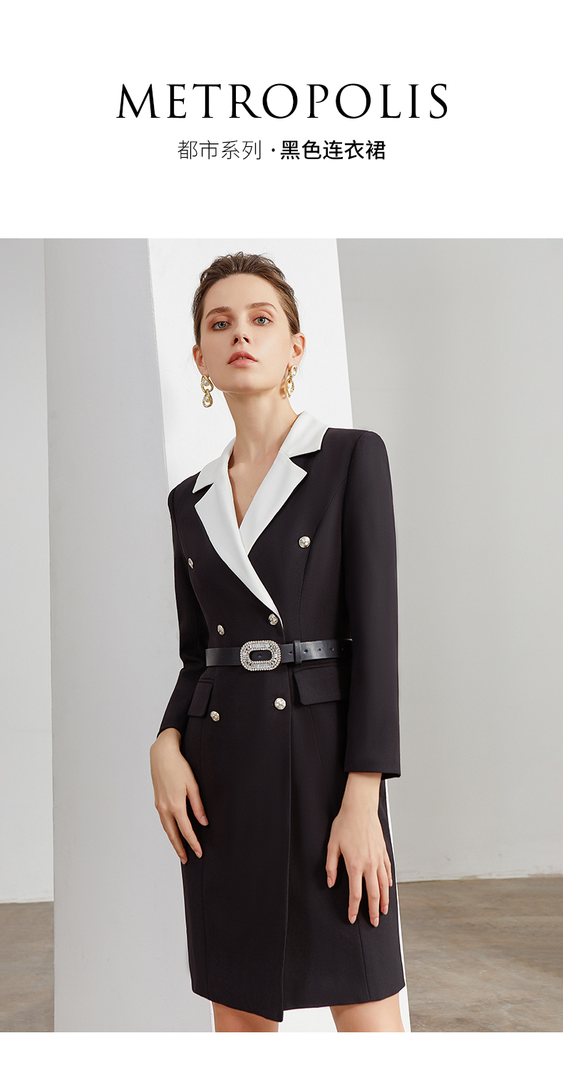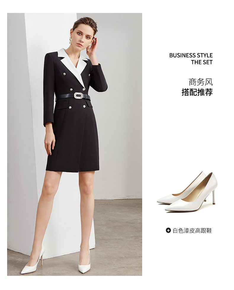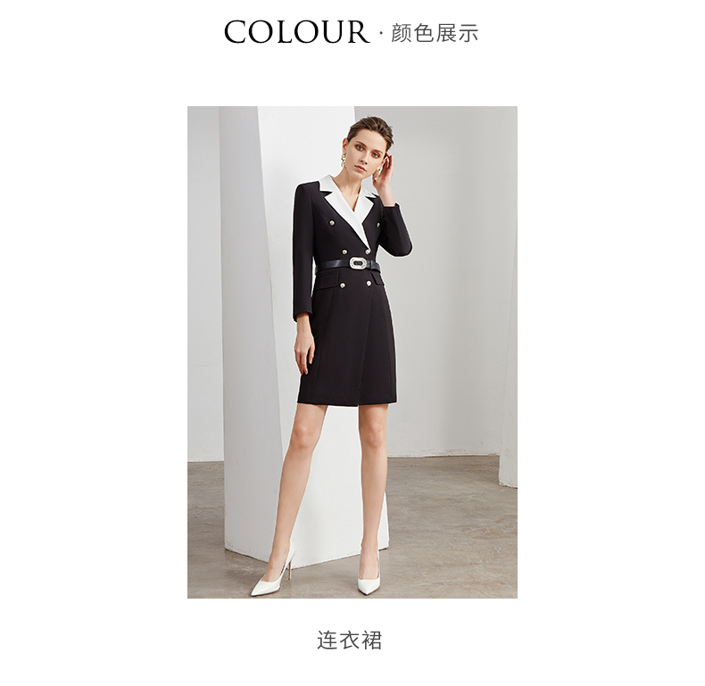 IWY/气质黑色连衣裙 拼接白色西装领职业装Q236+D1+GB